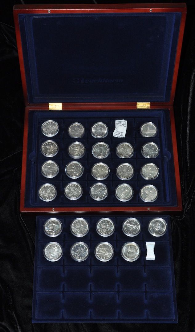 Lot of 28 Silver Dollars. Dates include: 1935-1967. Key dates are not included. Conditions range EF-UNC. Presented in a Lighthouse box. 28 Pcs.