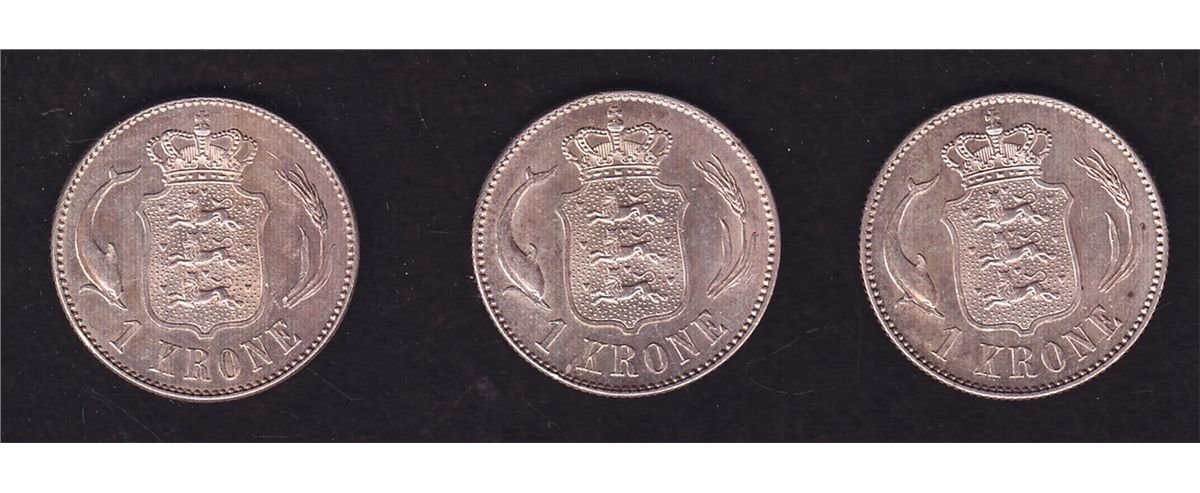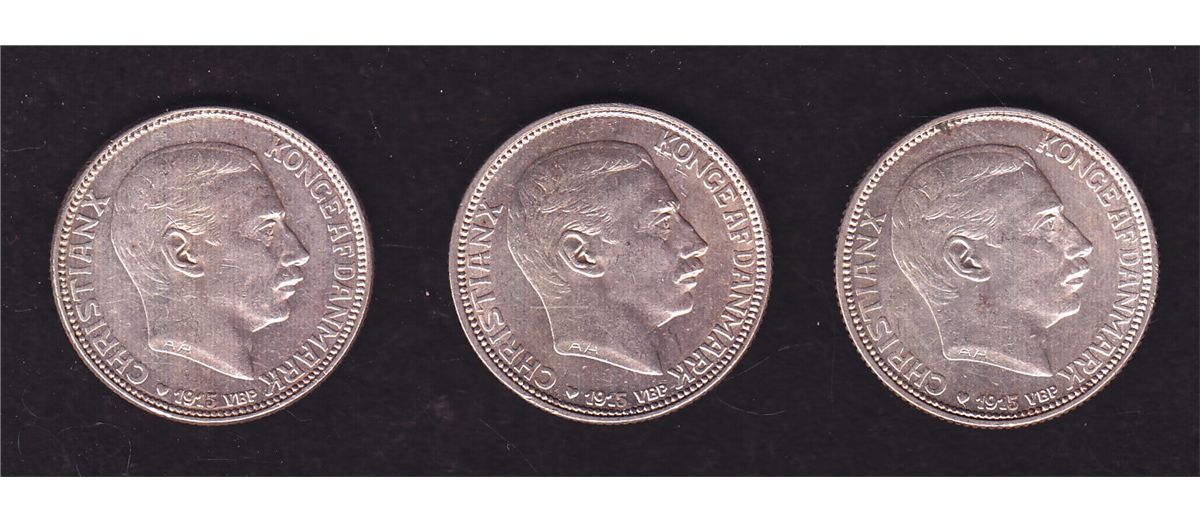 Lot of 3 1915 Denmark 1 Crone - All Uncs.