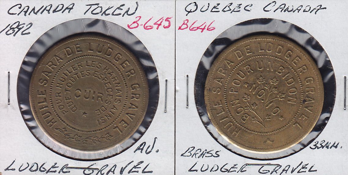 Lot of 3 Breton Tokens. Includes: BR 648, J. Lanclot, Montreal, PQ, brass, UNC; BR 649, B.B. Canteen, Quebec, PQ, white metal, VF; BR 650, B.B. Canteen, Quebec, PQ, brass, VF. 3 Pcs.