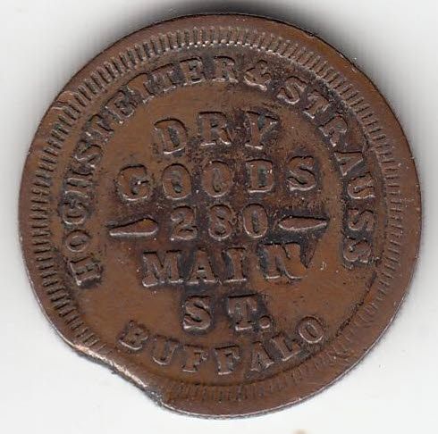 Lot of 3 Civil War Tokens. 105J-1a, Hochstetter & Strauss, Buffalo, R3, Clipped Flan, VF. 105K-1a, A.M. Johnson, Buffalo, R2, F/VF. 140A-1a, Alden & Frink 1862, R1, EF. 3 Pcs.
