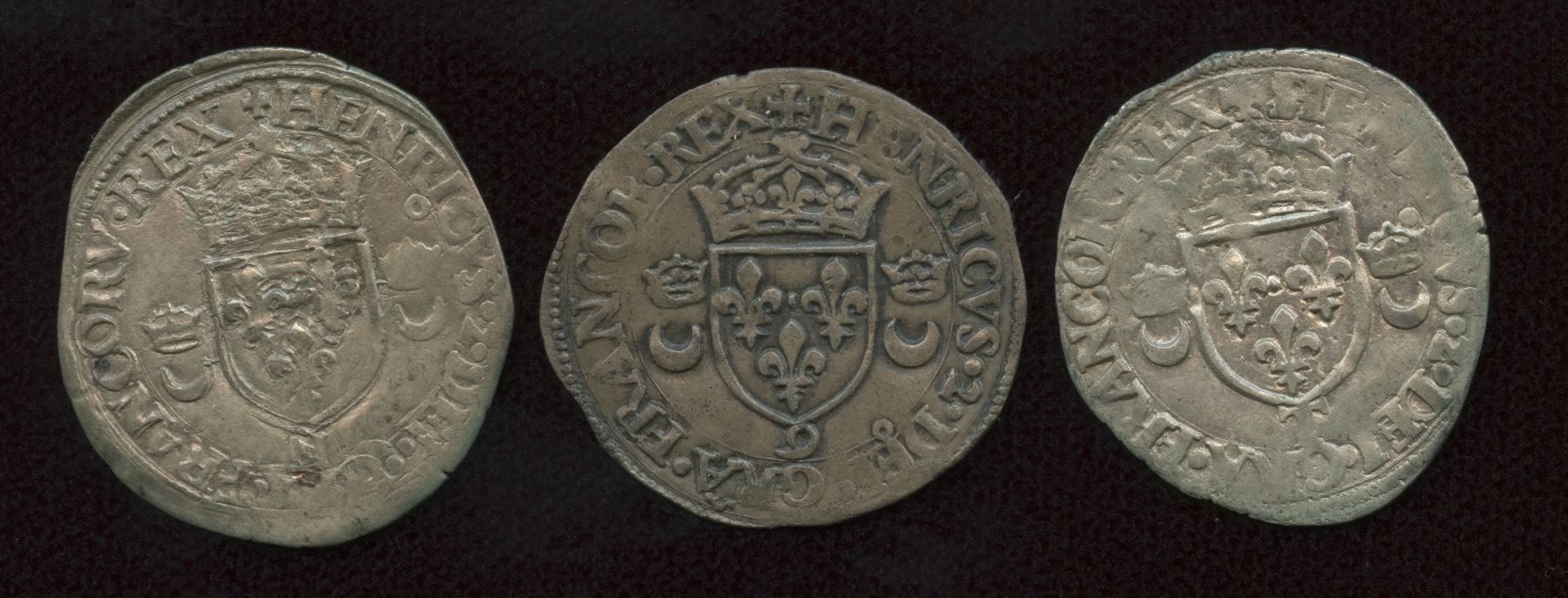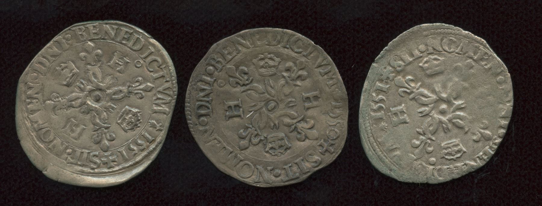 Douzains aux croissants, Henri II, 1550 9, VF+; 1551N, VF+; 1551T, aVF; Ciani 1305. 3 Pcs.