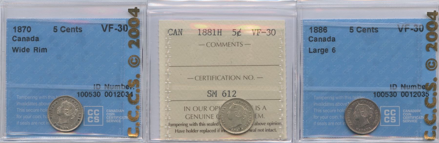 Includes: 1870 CCCS VF-30, wide rim; 1881H VF-30; 1886 CCCS VF-30, large 6. 3 Pcs.