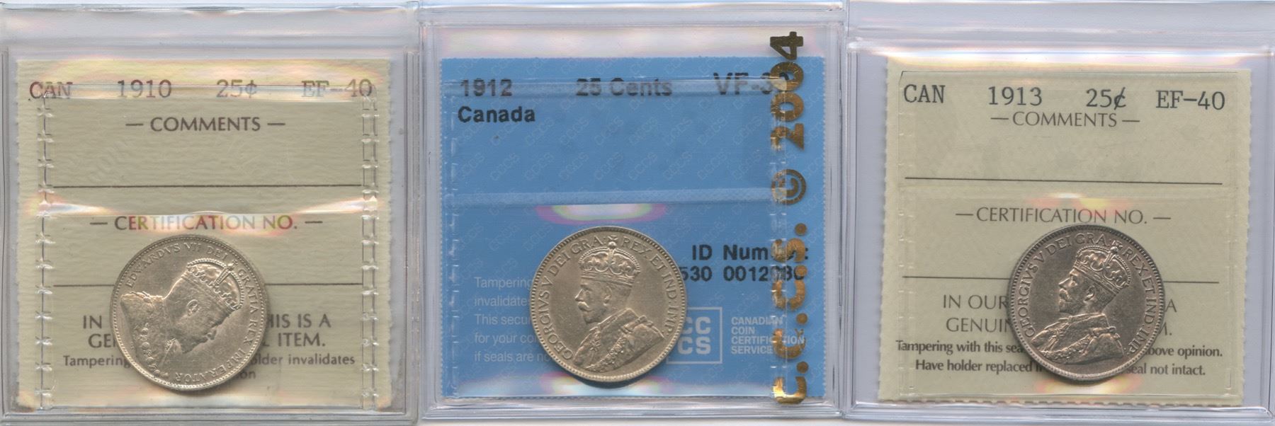 Includes: 1910 ICCS EF-40; 1912 CCCS VF-30; 1913 ICCS EF-40. 3 Pcs.