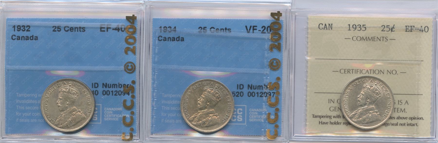 Includes: 1932 CCCS EF-40; 1934 CCCS VF-20; 1935 ICCS EF-40. 3 Pcs.