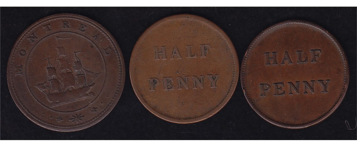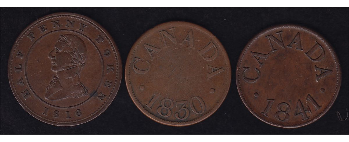 Lot of 3 Lower Canada Tokens. Includes: CH LC-12, BR 531, Montreal 1815, VF; CH LC-13A, BR 532, 1830 Canada, VG; CH LC-13B, BR 532, 1841 Canada, EF. 3 Pcs.