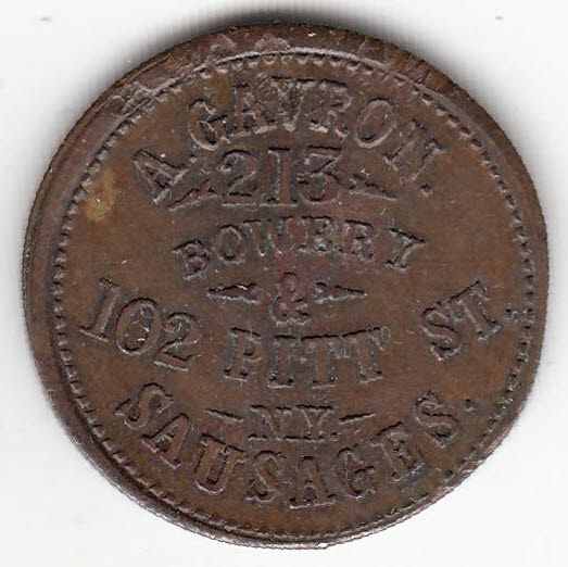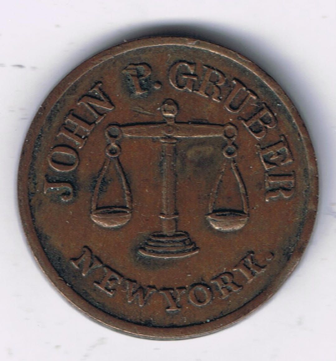 Lot of 3 NY, NY Civil War Tokens. Includes: 630AB-7a, A. Gavron, VF. 630AF-2a, J.A.C. Grube, R2, VF. 630AG-1a, John P. Gruber, R2, VF. 3 Pcs.
