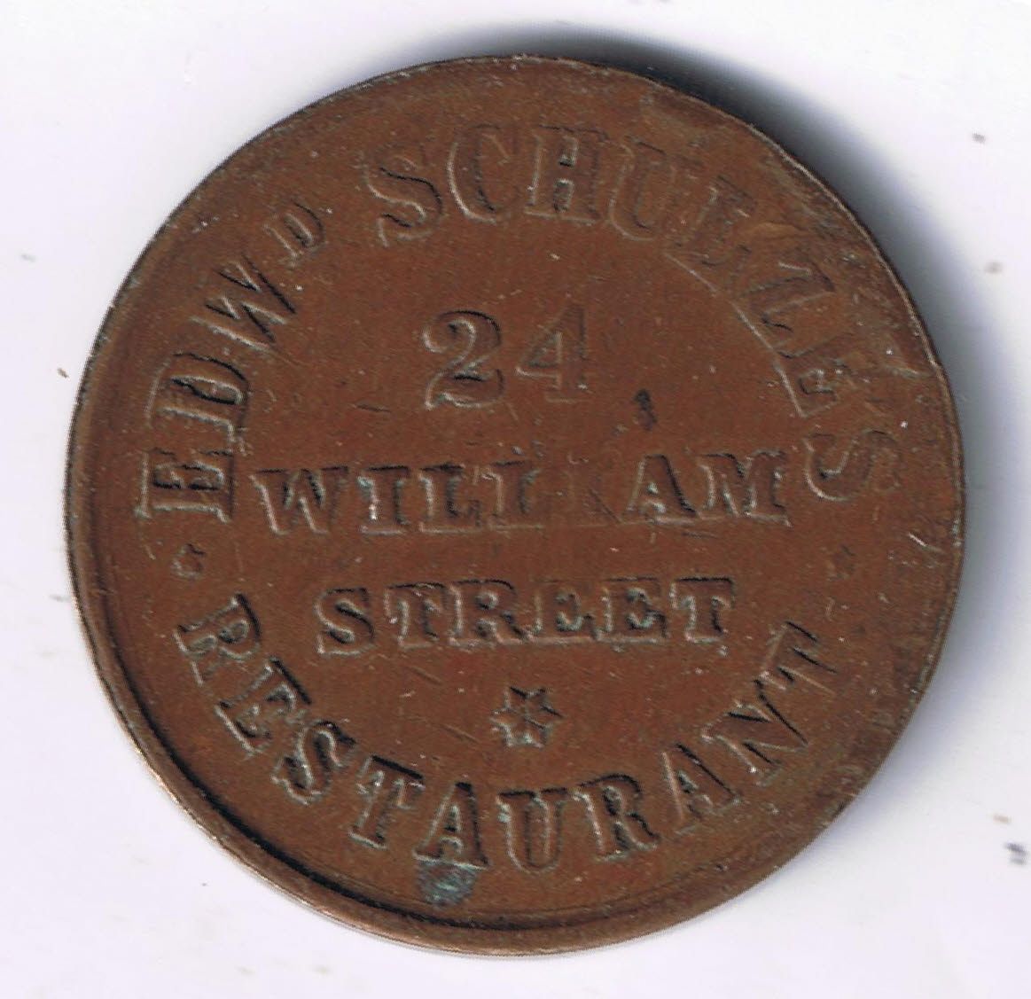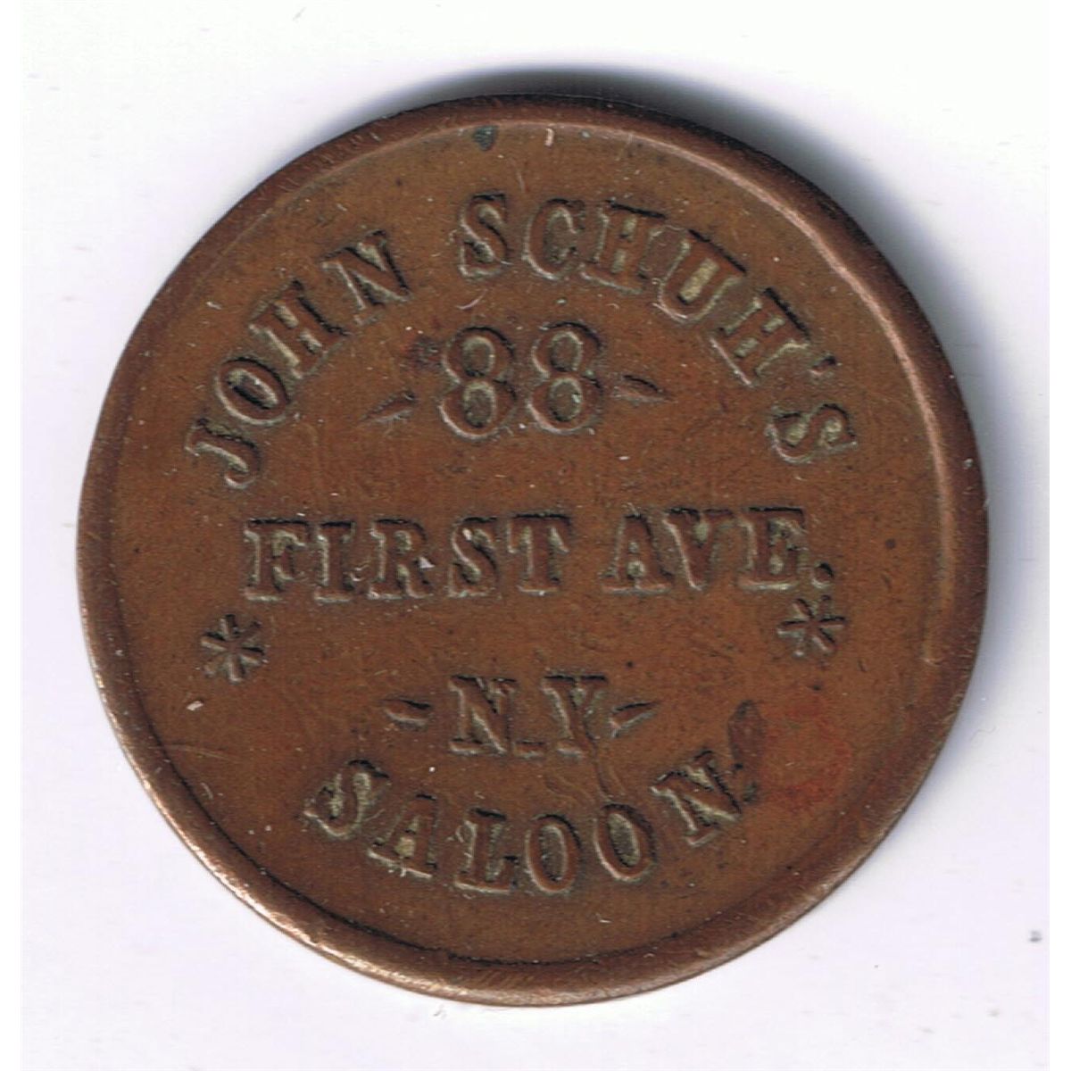 Lot of 3 NY, NY Civil War Tokens. Includes: 630BM-1a, John Schuh's, R1, VF. 630BO-1a, Edwd. Schulze's, R1, EF. 630BO-2a, Edwd. Schulze's, R1, VF. 3 Pcs.