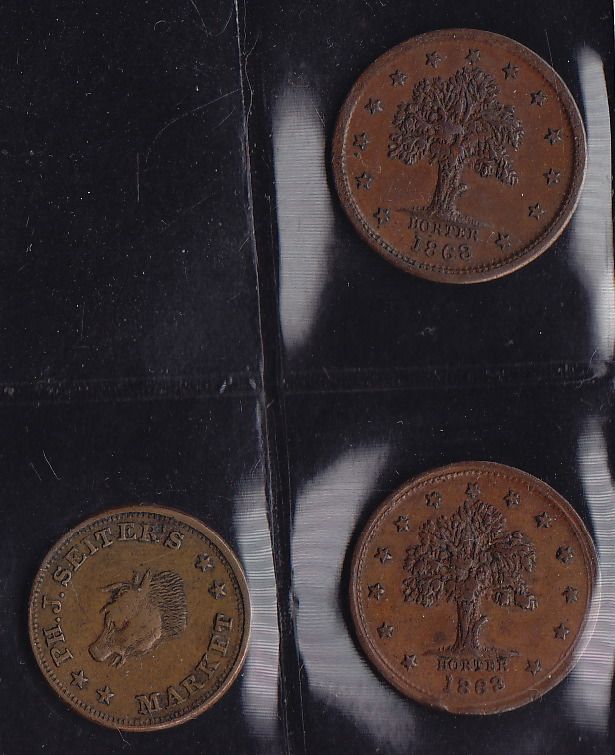 Lot of 3 NY, NY Civil War Tokens. Includes: 630BQ-1b, PH. J. Seiter's, R1, F. Two-630BR-1a, I. Sommers, R2, VF. 3 Pcs.