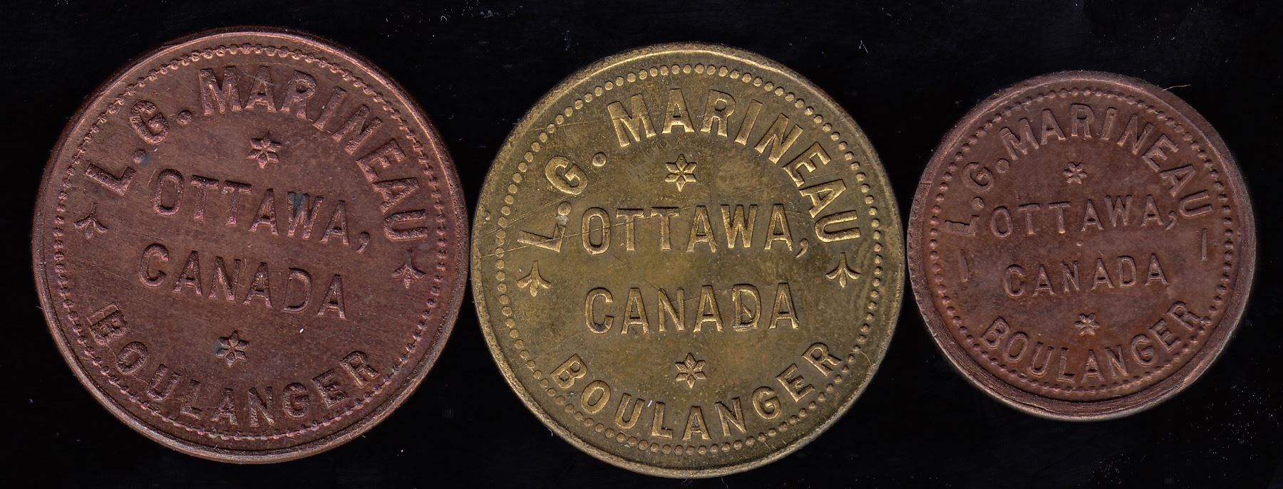 Br. 741, L.G. Marineau, 1 pain, copper, Unc. lustre; Br. 741, L.G. Marineau, 1 pain, brass, Unc., lustre; Br. 742, L.G. Marineau, ½ pain, copper, Unc., lustre. 3 Pcs.