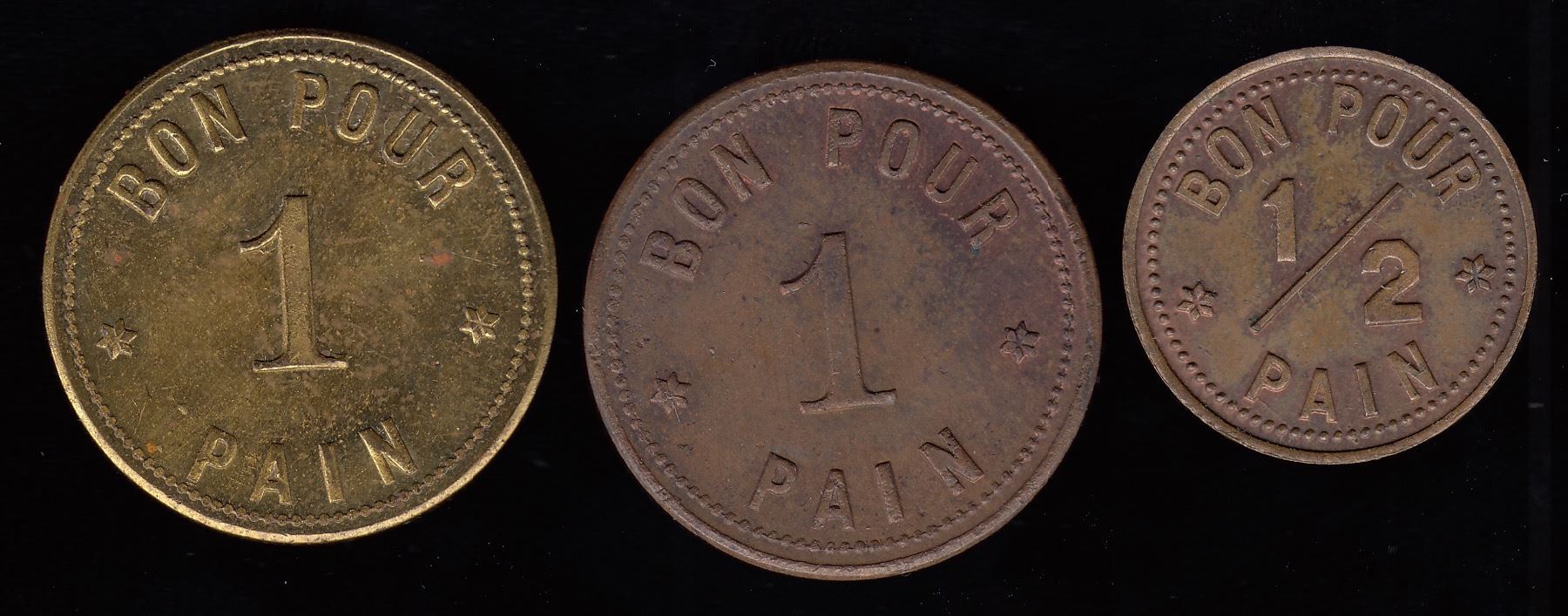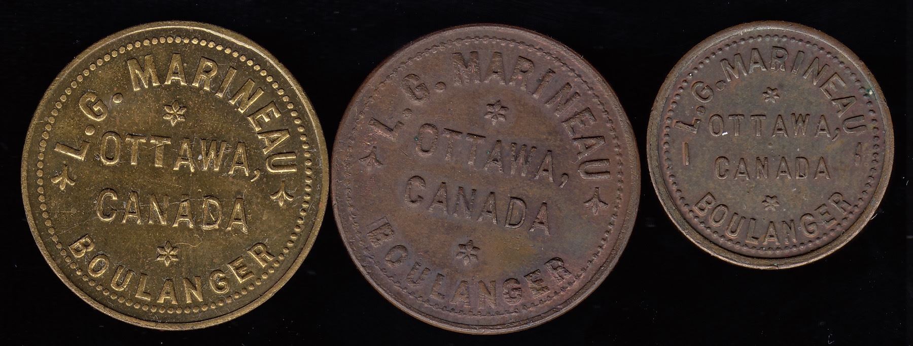 Br. 741, L.G. Marineau, 1 pain, brass, BU; Br. 741, L.G. Marineau, 1 pain, copper, Unc.; Br. 742, L.G. Marineau, ½ pain, copper, Unc. 3 Pcs.