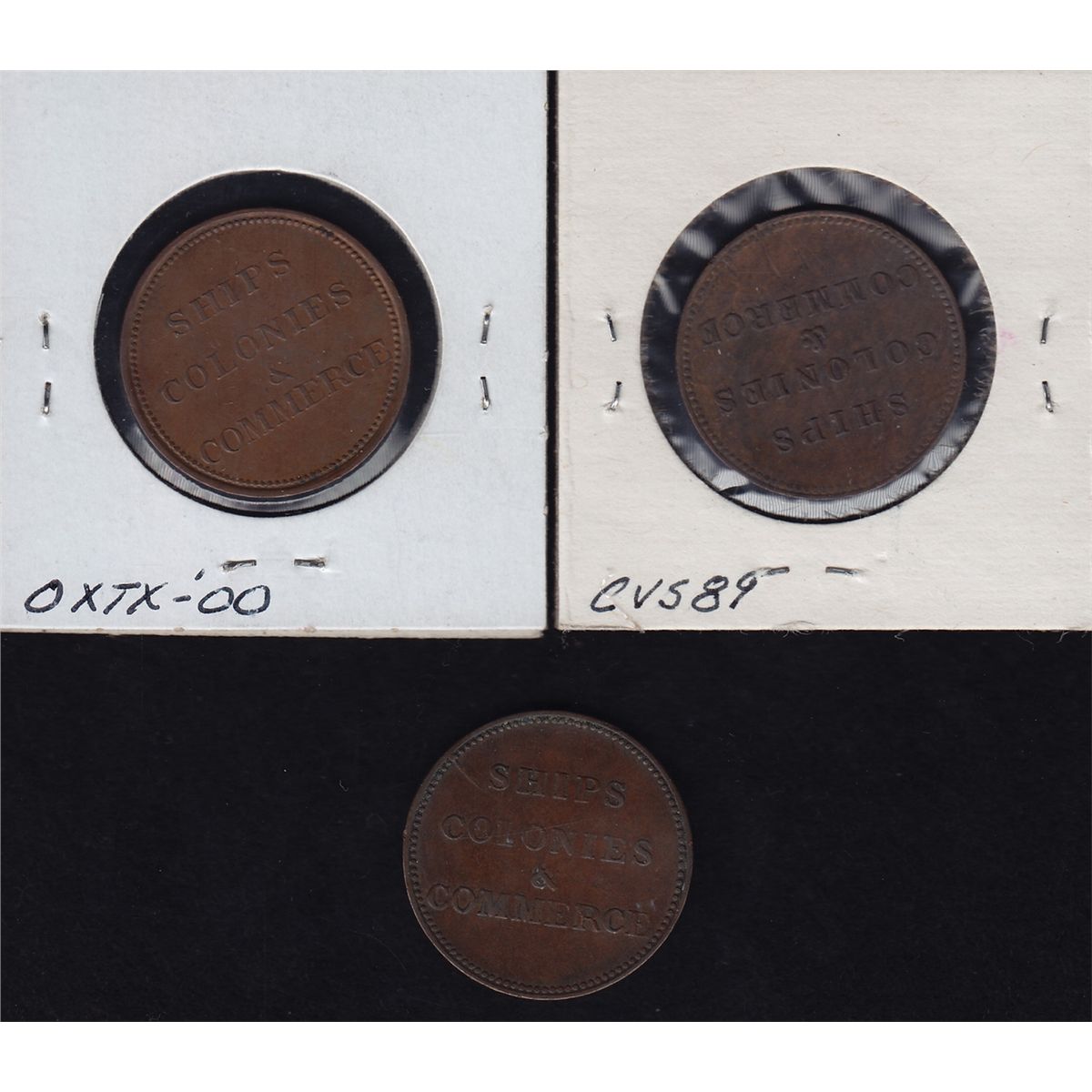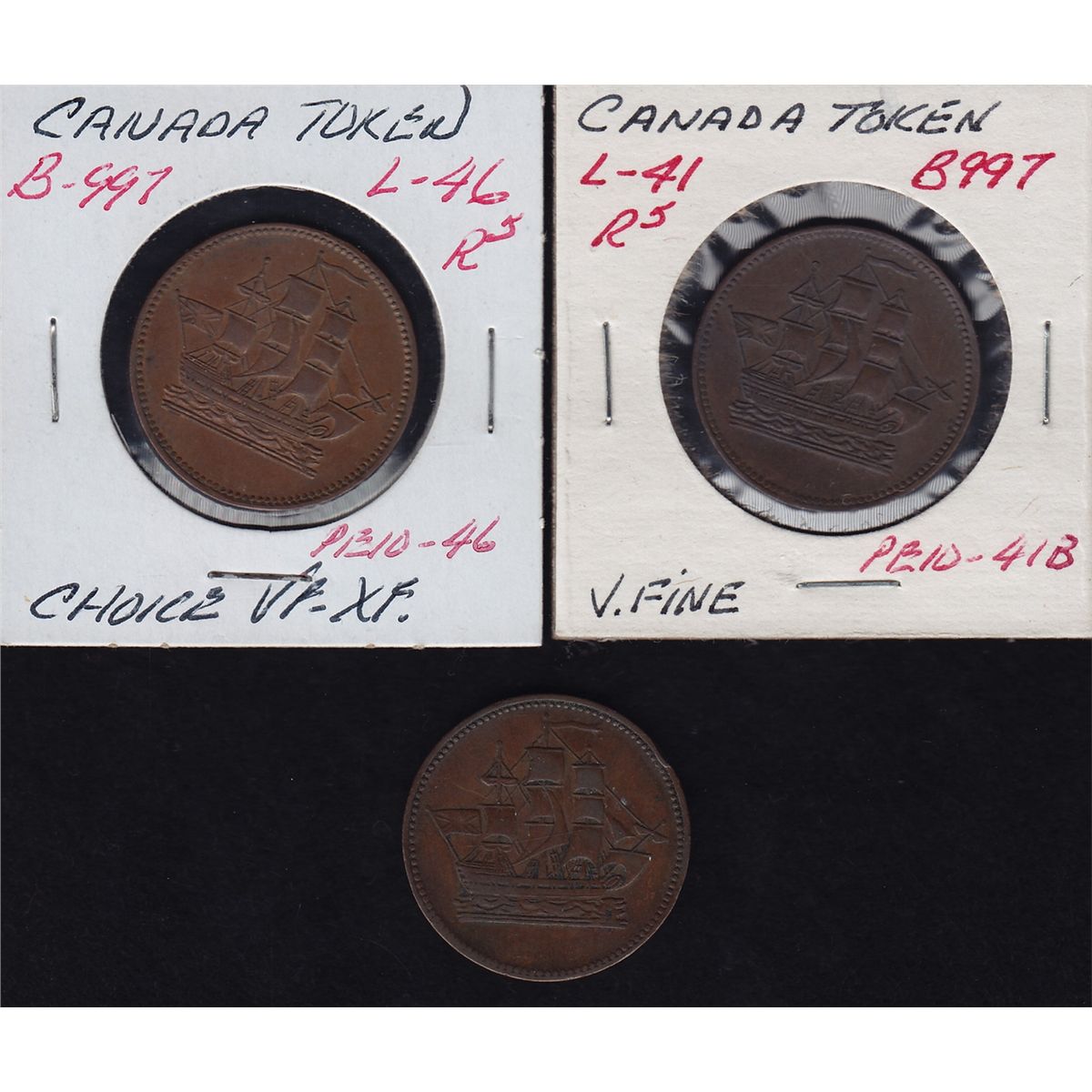 Lot of 3 PEI Colonial Tokens. Includes: CH PE-10-41B, BR 997,VF, CH PE-10-45,BR 997, VF, CH PE-10-46, BR 997, VF. 3 Pcs.