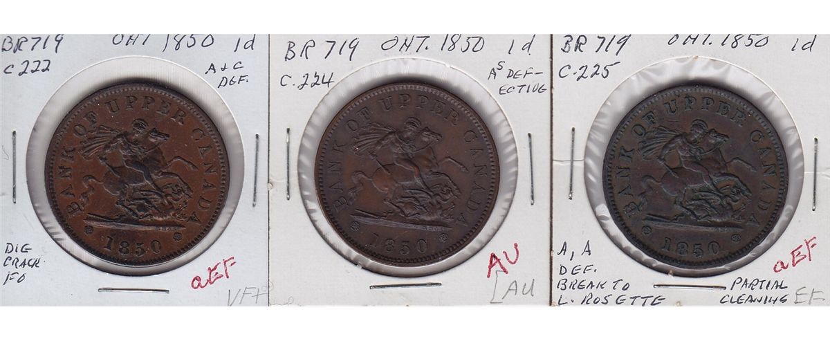 Lot of 3 Province of Canada Tokens - Lot includes: Courteau 222, about EF; Courteau 224, AU; Courteau 225, about EF. 3 Pcs.
