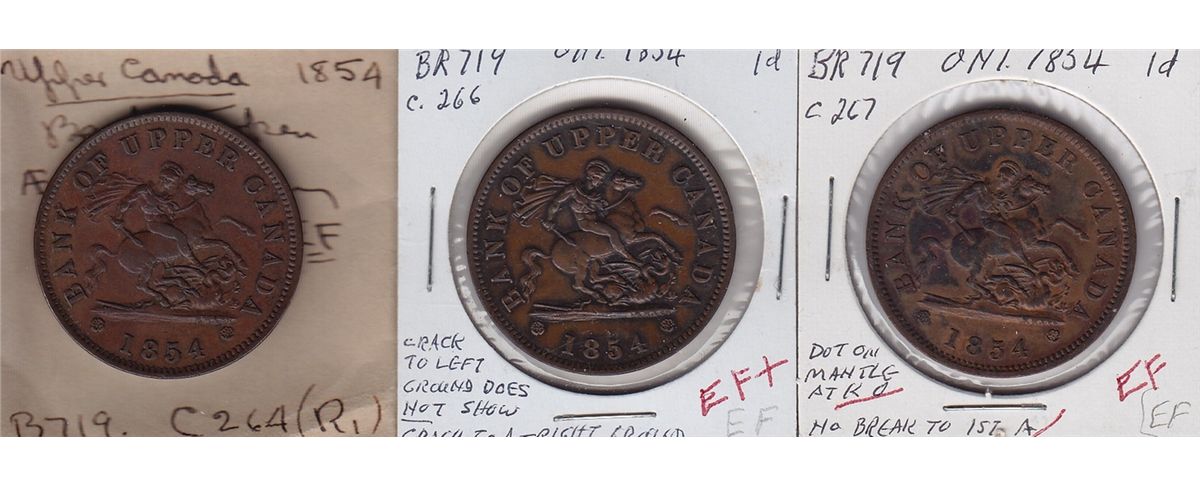 Lot of 3 Province of Canada Tokens - Lot includes: Courteau 264, plain 4, EF; Courteau 266, plain 4, EF+ (an R.7); Courteau 267, plain 4, EF. 3 Pcs.