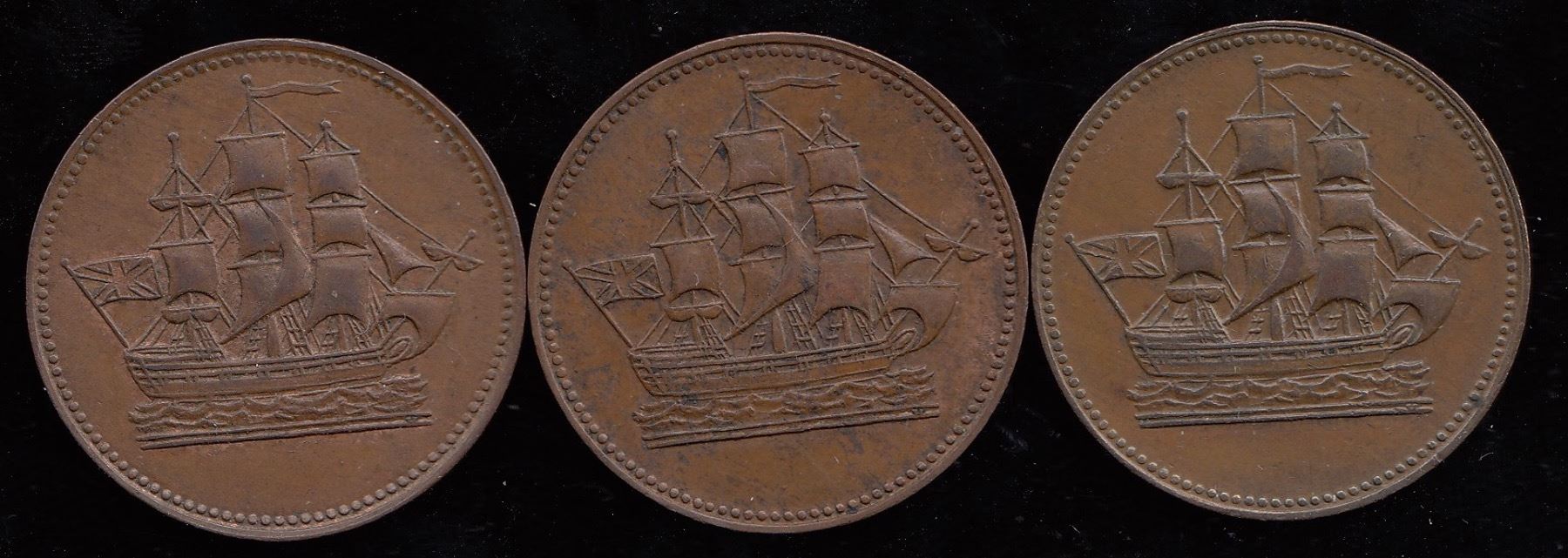Lees 29, PE-10-29, solid AU, with advanced die breaks; Lees 30, PE-10-30, Unc; Lees 31, PE-10-31, nice AU. 3 Pcs.