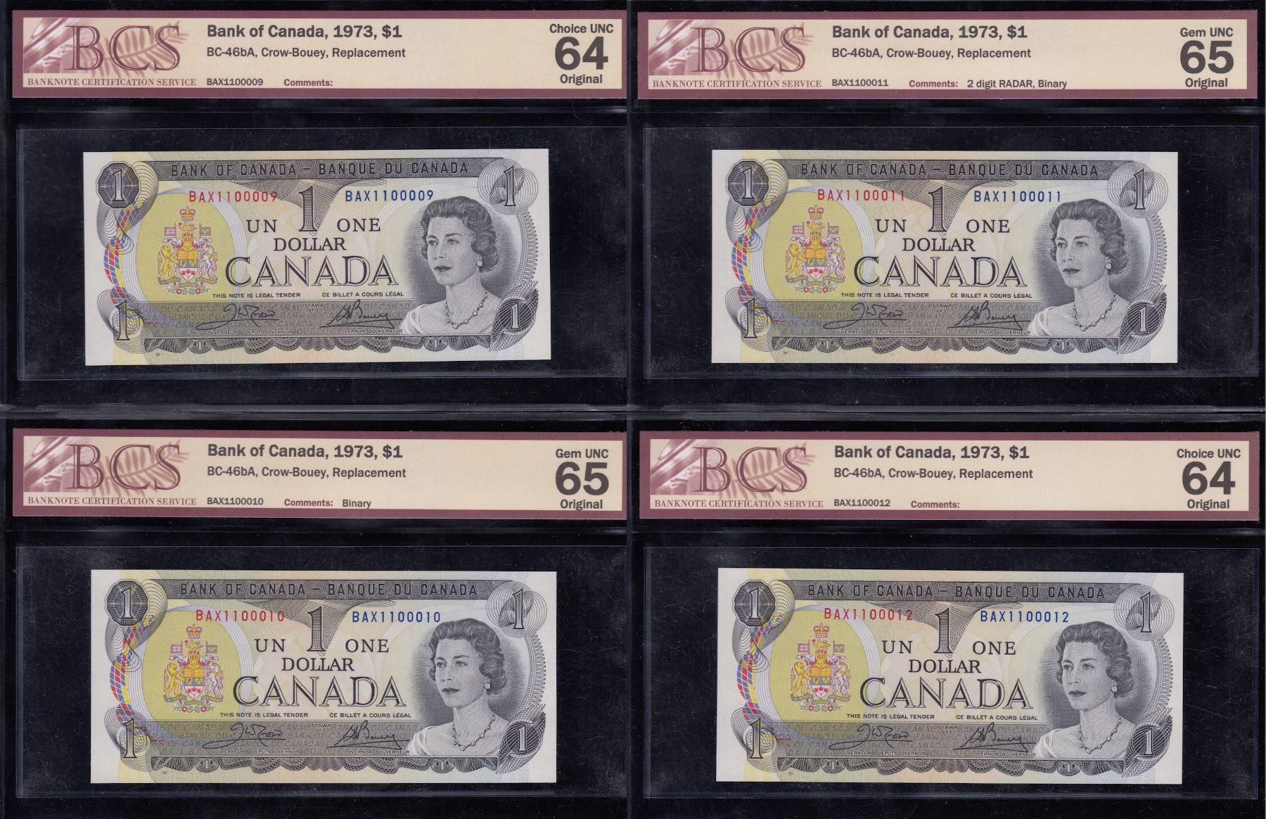 BC-46bA. All BCS Graded Choice-Gem UNC, original. This lot features a radar serial number within lot. S/N: BAX1100009 - BAX1100012. 4 Pcs.