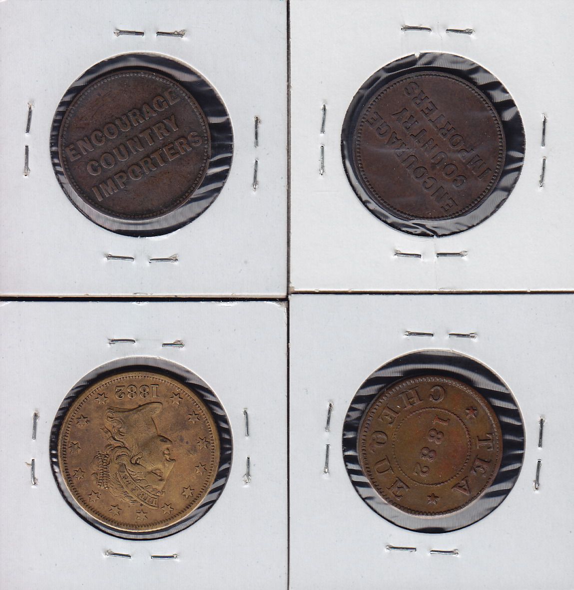 Lot of 4 Breton Tokens. Includes: BR 897, Robert Purves, Wallace, NS, copper, EF; BR 897, Robert Purves, Wallace, NS, VG, BR 901; Blakley & Co., Halifax, NS, brass, EF; BR 902, Gass' Tea, Halifax, NS, brass, EF. 4 Pcs.