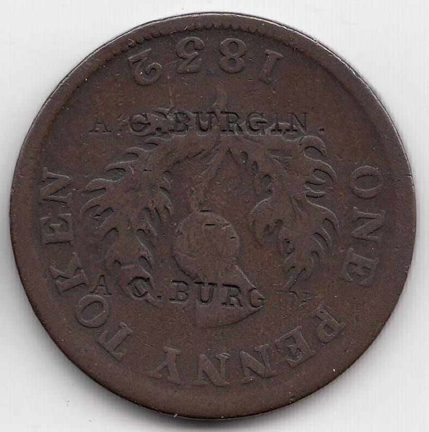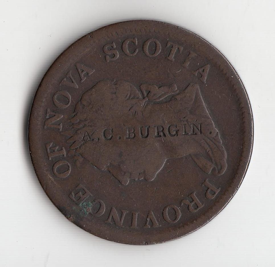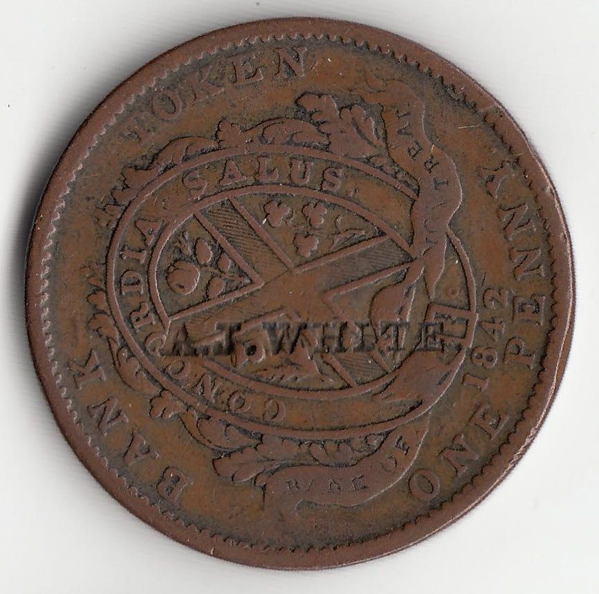 Lot of 4 Canadian Countermarked tokens Includes: A.C. BURGIN (2mm x 18mm) countermarked twice on reverse and once on obverse of a Br870 Province of Nova Scotia 1832 One Penny Token. W. SEARS (3mm x 21mm) countermarked on the reverse and obverse of a BR 527 1844 Bank of Montreal Half Penny. A countermark of a grille of four rectangles (4mm x 3mm)on the obverse of a BR 527 1844 Bank of Montreal Half Penny. A.J. WHITE (2mm x 18mm) countermarked on the reverse of a BR 526 Bank of Montreal Penny. Countermarks F-VF . 4 Pcs.
