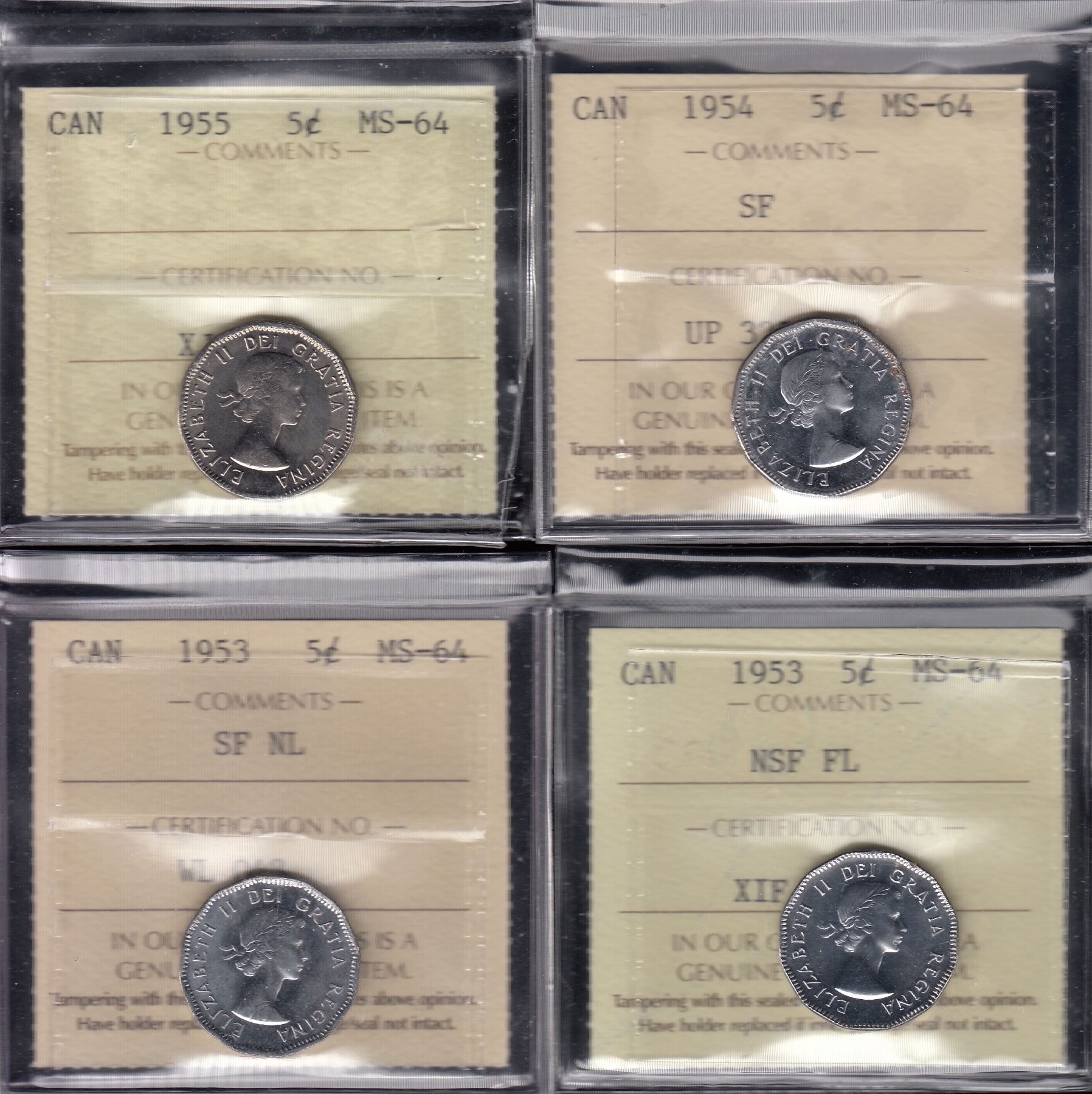 Dates include: 1953 NSF FL. 1953 SF NL, 1954 SF, 1955. All graded MS-64. 4 Pcs.