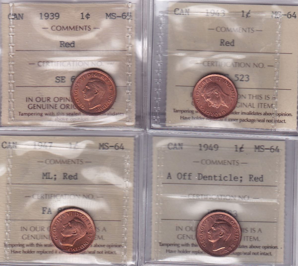 Includes: 1939 MS-65, red. 1943 MS-64, red. 1947 ML MS-64, red. 1949 A off dent. MS-64, red. 4 Pcs.