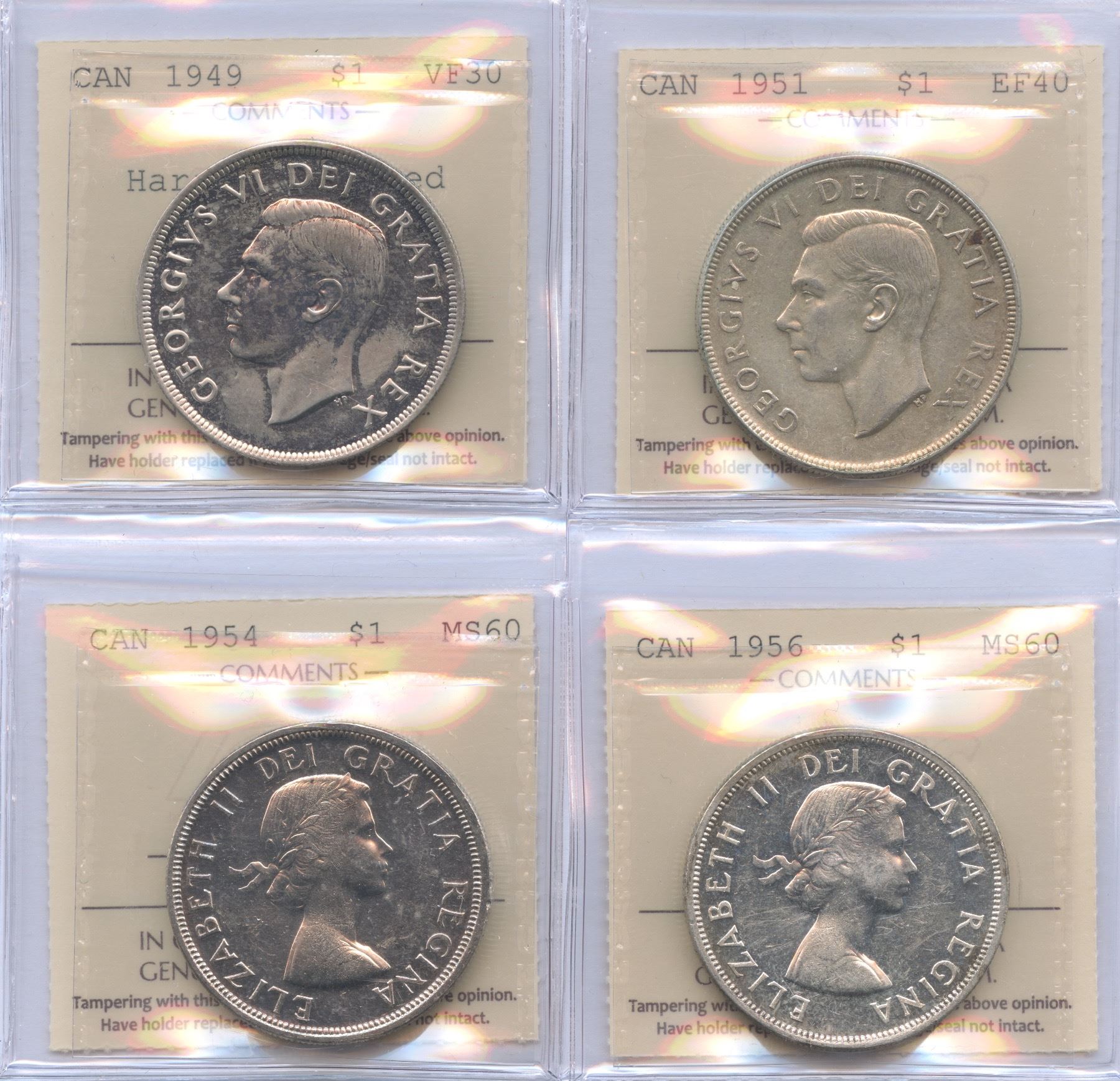 Includes: 1949 VF30, harshly cleaned. 1951 EF40. 1954 MS60. 1956 MS60. 4 Pcs.