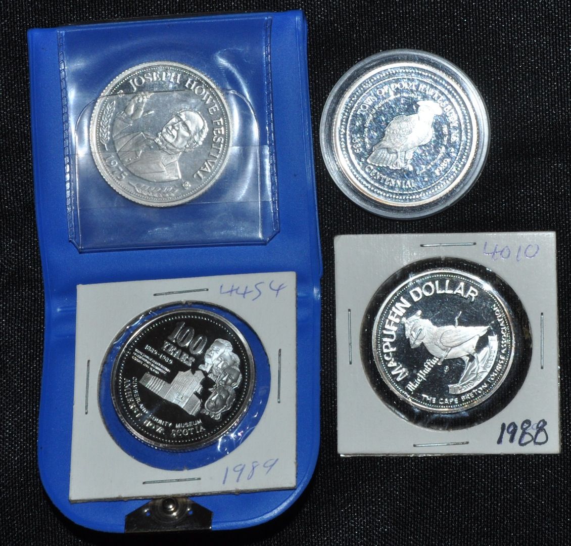 Lot of 4 Nova Scotia Silver Trade Dollars - Lot includes: 1975 Halifax, 1989 Amherst, 1988 & 1989 Cape Breton. 4 Pcs.
