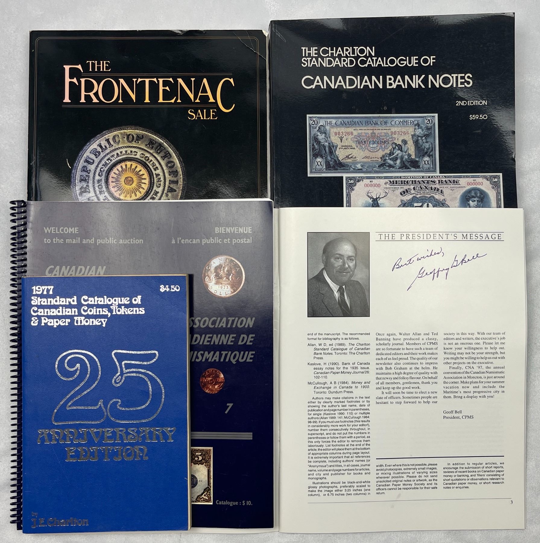 Lot of 4 Numismatic Literature - Includes: 25th Charlton Anniversary Edition, 1977; 1997 CAN Auction, Moncton; Bowers and Merena, The Frontenac Sale auction catalogue; Charleton Chartered Banknote catalogue, 2nd Edition.
