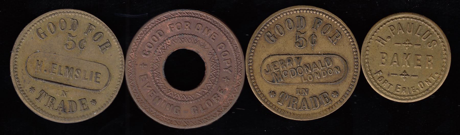 Br. 752, H. Elmslie, 5?, brass, Unc.; Br. 755, Evening Globe, EF; Br. 757, Jerry McDonald, 5?, brass, AU; Br. 760, H. Paulus, 5?, brass, BU. 4 Pcs.