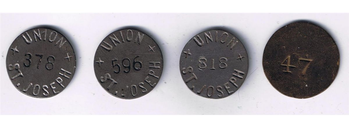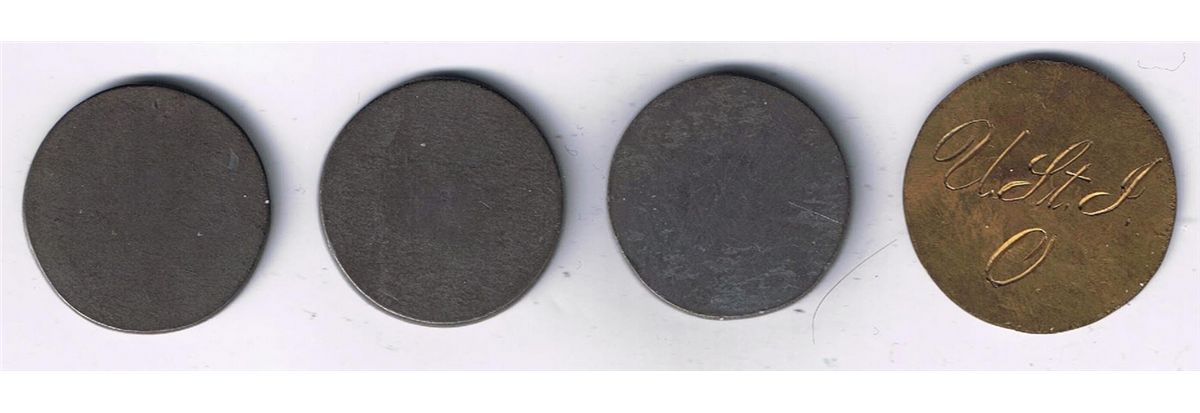 Lot of 4 incused Union St Joseph tokens.