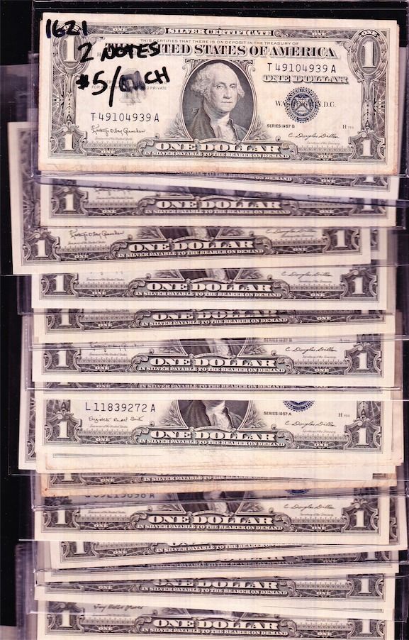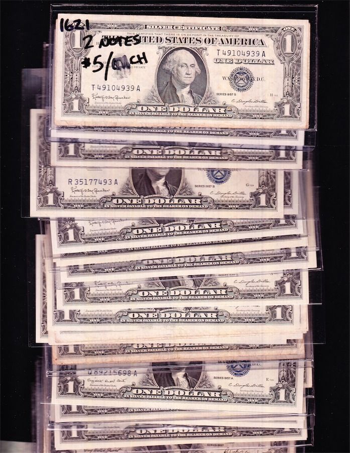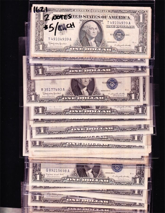 Lot of 43 USA $1 Silver Certificates - Series of 1957, A, B, FR# 1611, 1620, 1621. Mixed conditions and few consecutive Unc's.
