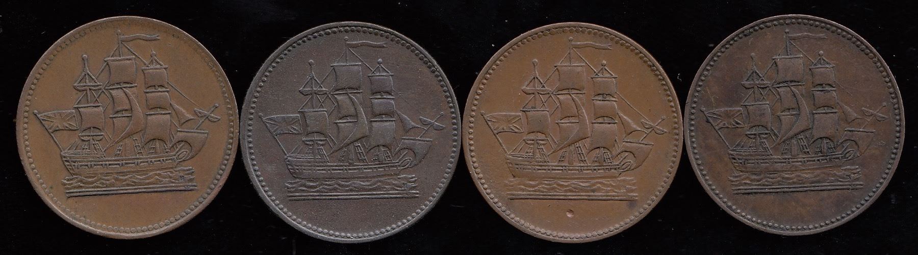 Lees 35, PE-10-35, EF; Lees 37, PE-10-37, EF, with small, well-centred punch mark in exergue; Lees 38, PE-10-38, about EF; Lees 40, PE-10-40, AU. 4 Pcs.