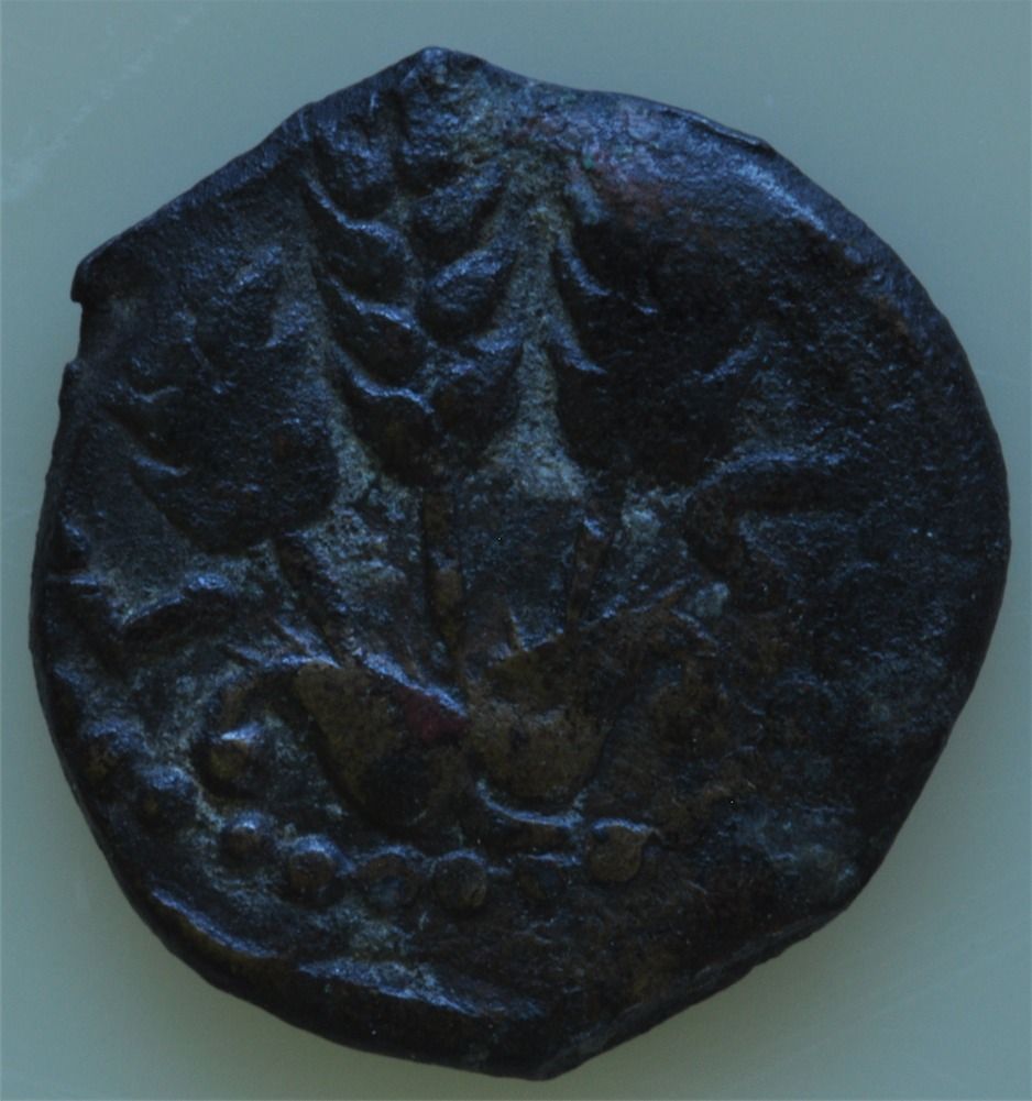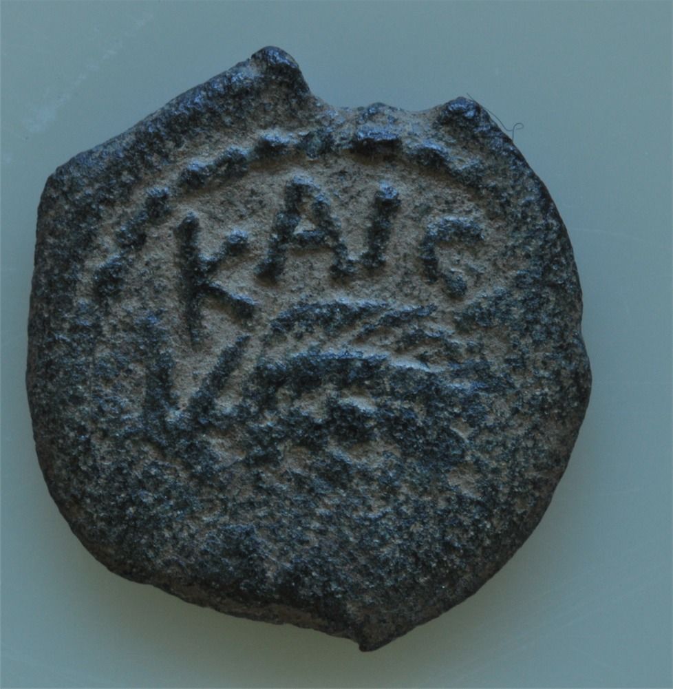 Lot of 5 Biblical Coins - Jerusalem (14 BC-6 AD) AE-Prutah Herod Archelaus Obv: Prow of a galley Rev: Inscription surrounded by wreath 1.1 gram, Hen 506, VF; Caesarea (6-9 AD) AE-Prutah Coponius under Augustus Obv: Ear of barley KAICA Rev: Palm tree dates and letter L in the left field and A in right field 1.9 grams, Hem 635, Fine; Caesarea (15-26 AD) AE-Prutah Valerius Gratus under Tiberius Obv: legend within wreath Rev: Palm branch flanked IOY/L l., 2.2 grams, Fine; Caesarea (26-36 AD) AE-Prutah Pontius Pilatus under Tiberius Obv: Lituus with legend Obv: Date within wreath 1.4 grams Hen 650?, Fine; Jerusalem (41-42 AD) AE-Prutah Herod Agrippa I under Claudius Obv: Umbrella canopy with fringes , ½ legend due to off centre strike. Rev: three ears of Barley flanked by L and S. 2.5 grams, Hen 553, Fine +. 5 Pcs.