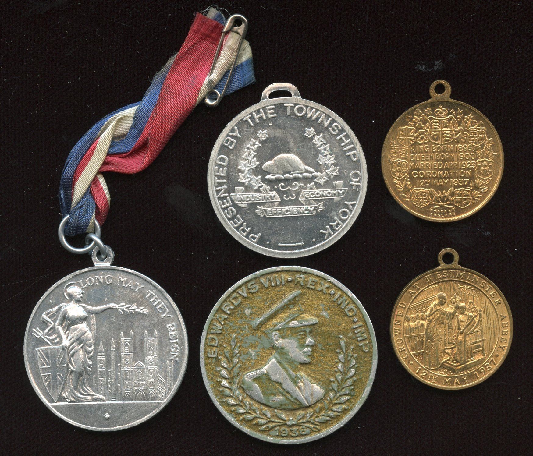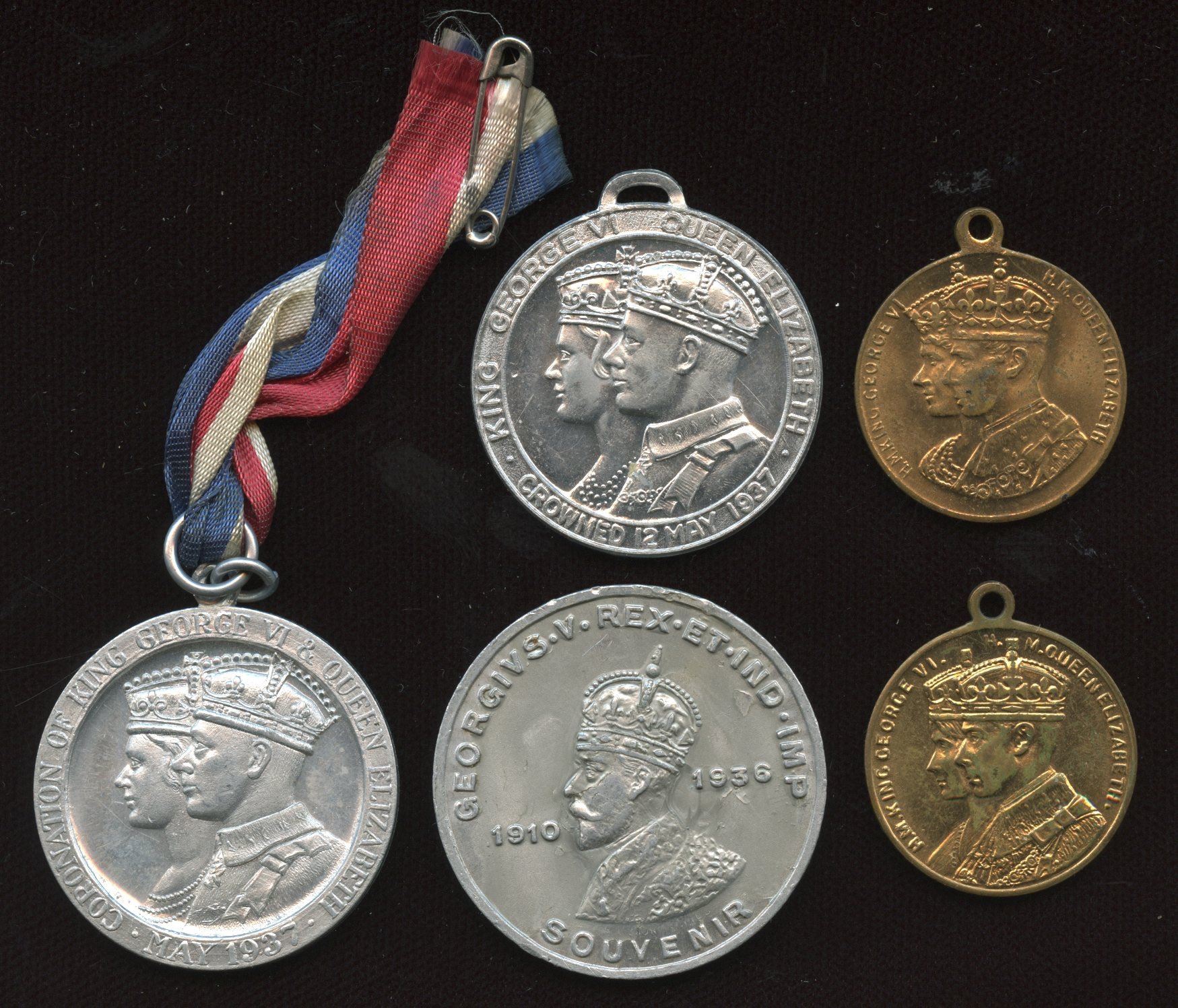 Lot of 5 Edward VIII and George VI coronation medals, one with original ribbon