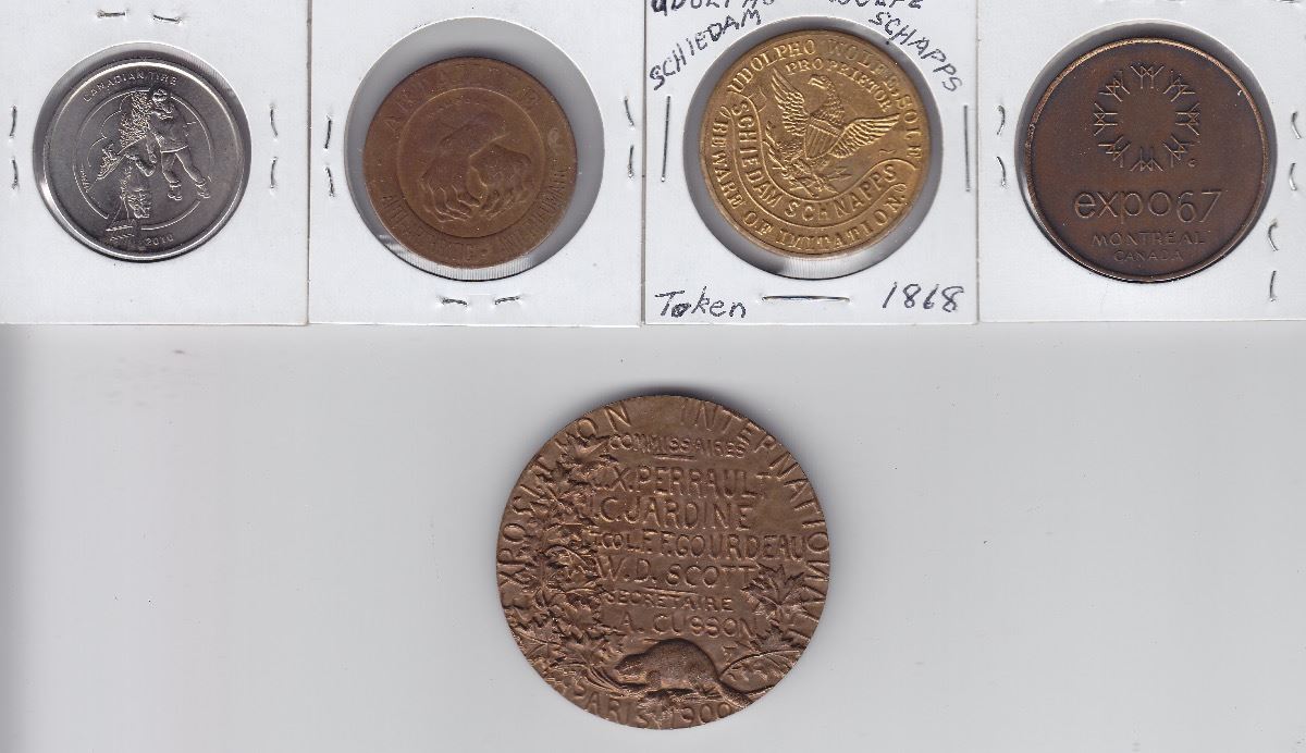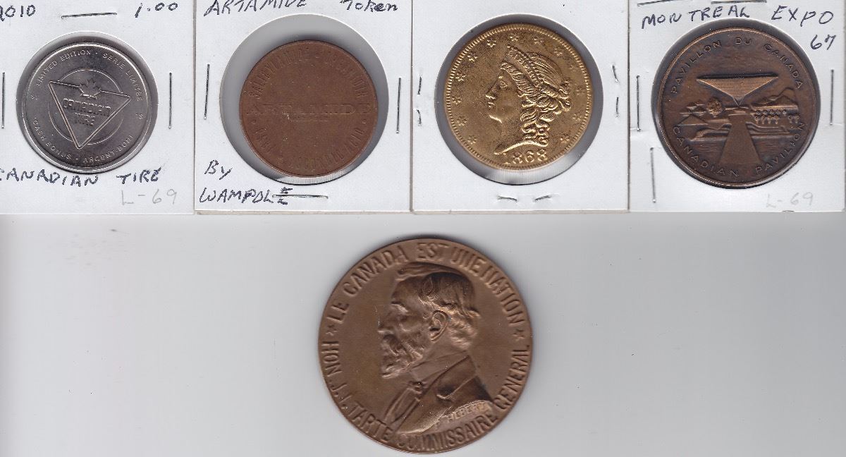 Lot of 5 Medals and Tokens - Includes: Hon. J. Tarte, Le Canada est une nation medal and four others. Viewing is recommended, no return. 5 Pcs.