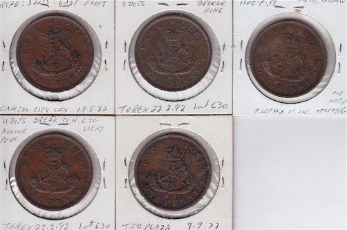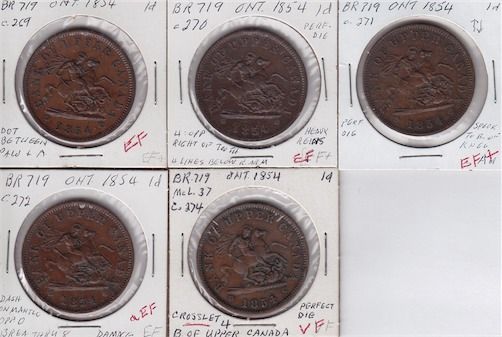 Lot of 5 Province of Canada Tokens - Lot includes: Courteau 269, plain 4, attractive EF; Courteau 270, plain 4, EF; Courteau 271, plain 4, EF+; Courteau 272, plain 4, about EF; Courteau 274, crosslet 4, VF. 5 Pcs.