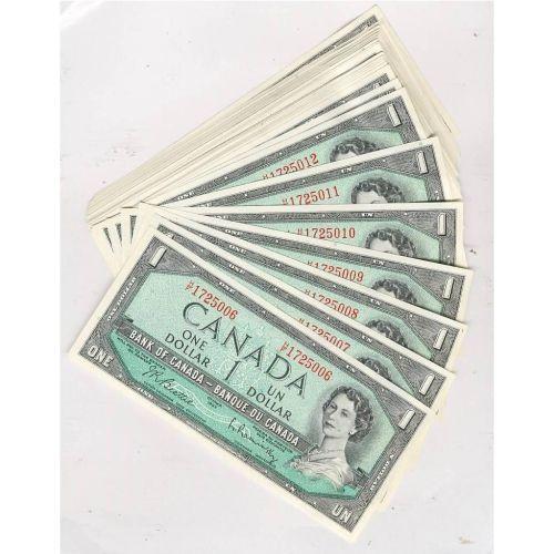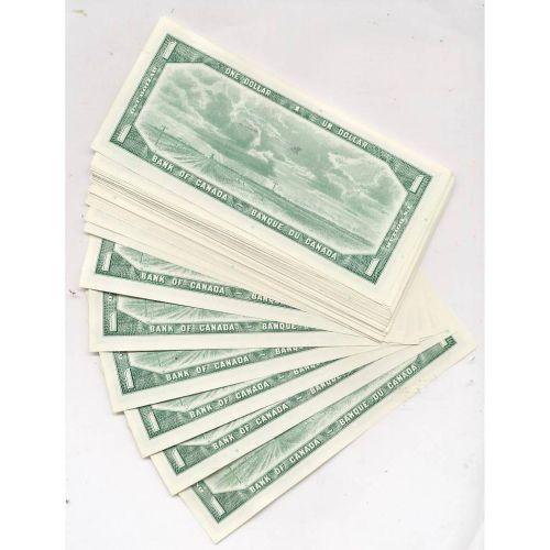 Lot of 50 Crisp Uncirculated 1954 Bank of Canada $1 Notes