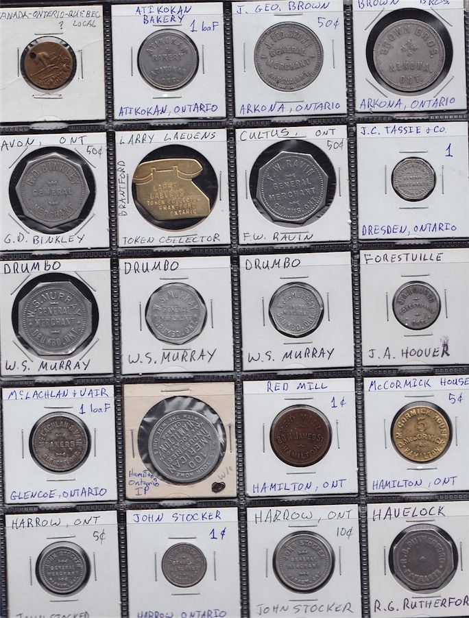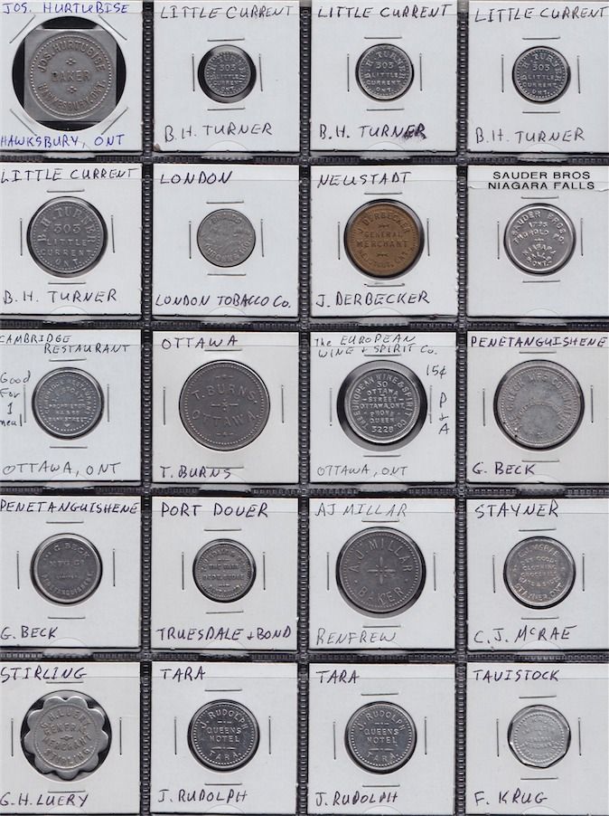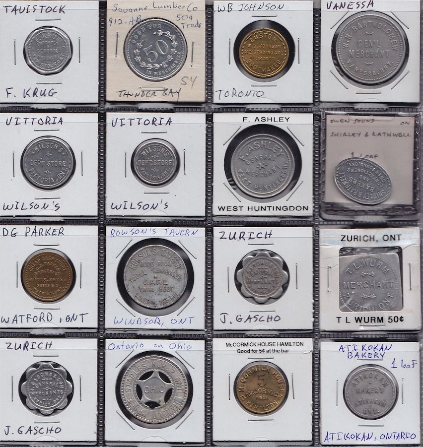 Lot of 56 Ontario Tokens. Great variety of Ontario tokens from Zurich, Parker, Tavistock, Turner and many more. Should be viewed. 56 Pcs.
