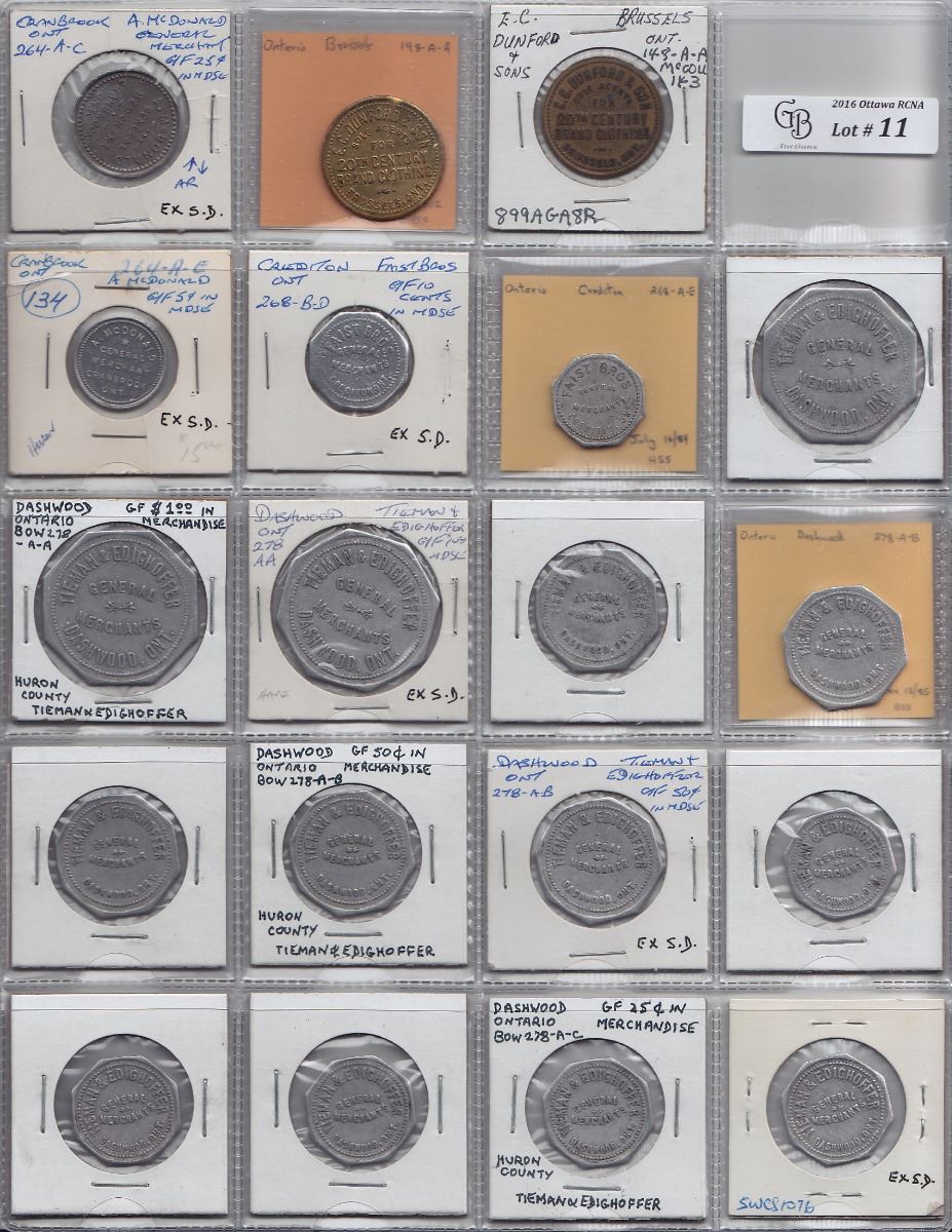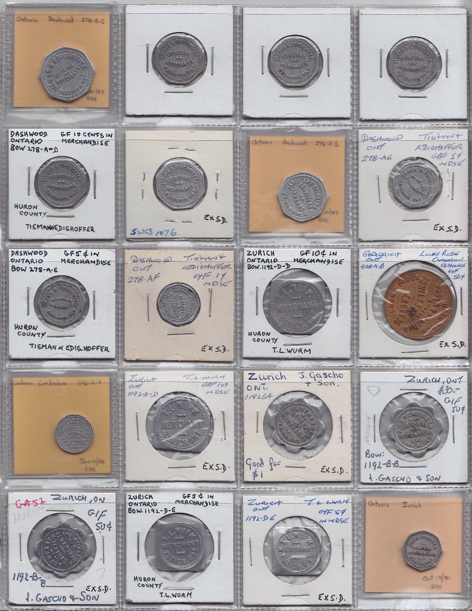 Lot of 59 Ontario Trade Tokens - Various Huron Co. trade tokens. Viewing recommended. VG to EF. 59 Pcs.