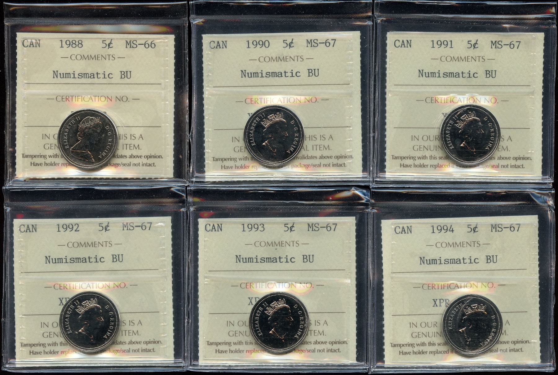 Includes: 1988 MS-66, NBU. All these are MS-67 NBU: 1990, 1991, 1992, 1993, 1994. 6 Pcs.
