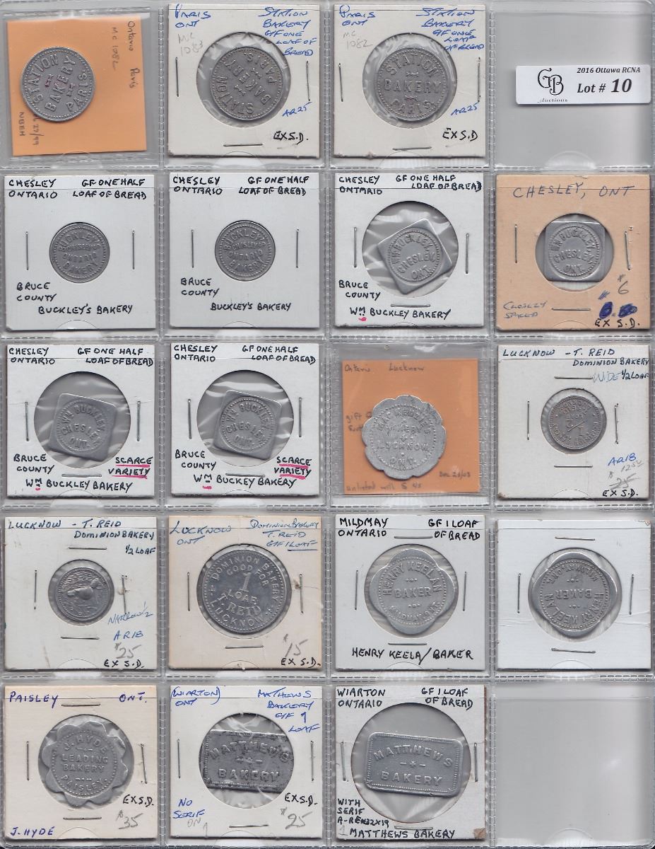 Lot of 62 Ontario Bread Tokens - Various Counties. Viewing recommended. G to EF. 62 Pcs.