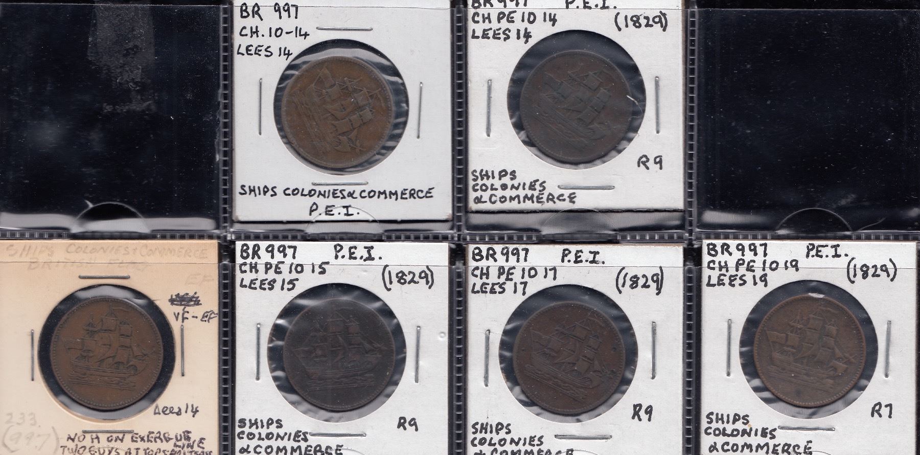Lees 14, PE-10-14 (3), Lees 15, PE-10-15 (1), Lees 17, PE-10-17 (1), Lees 19, PE-10-19 (1), VG to Fine+, avg Fine. 6 Pcs.