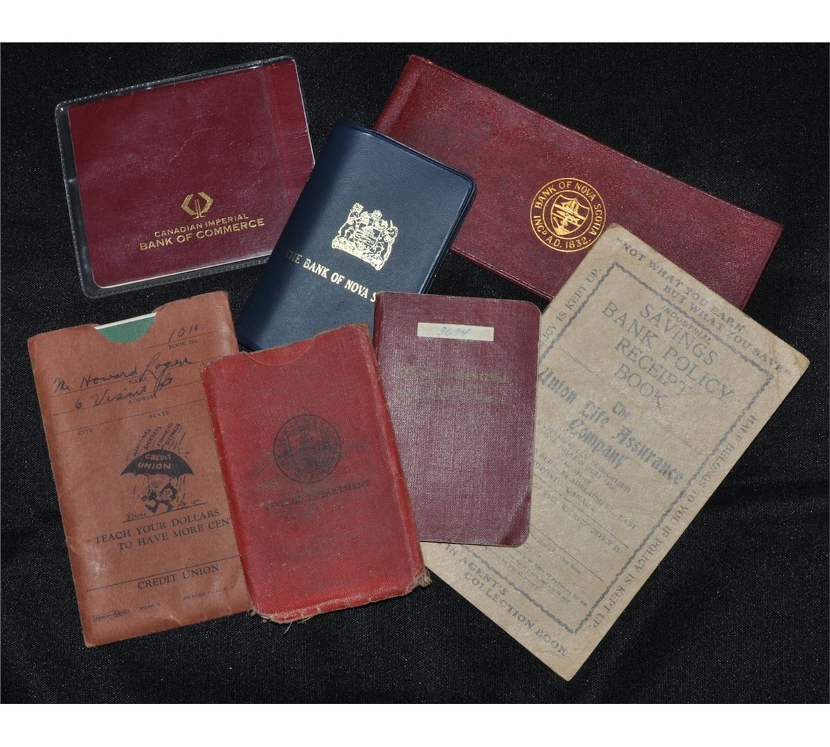 Lot of 7 Banking Memorabilia - Lot includes: Passbooks and folders from CIBC, Bank of Nova Scotia, Union Life Insurance Company and Credit Union, and Banque du Montreal. 7 Pcs.