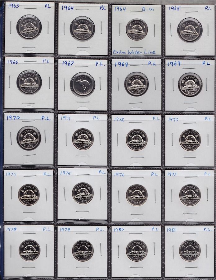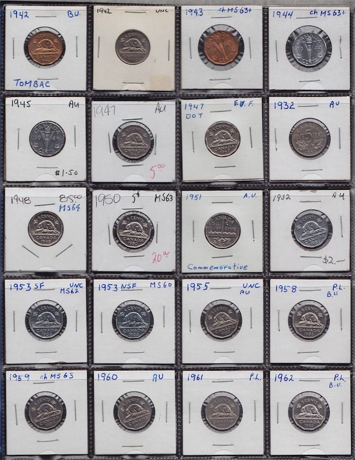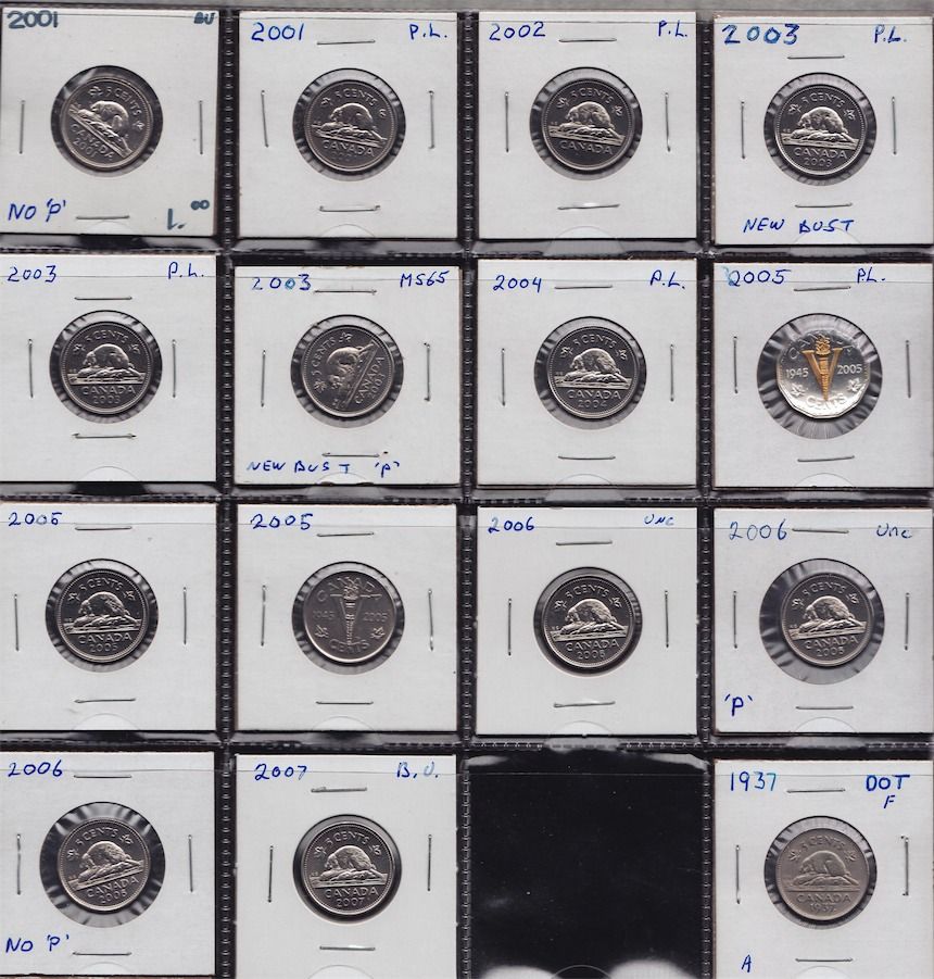 Lot of 75 Five Cents. Dates range from 1932 to 2007. Nice selection, mostly pl's. 75 Pcs.