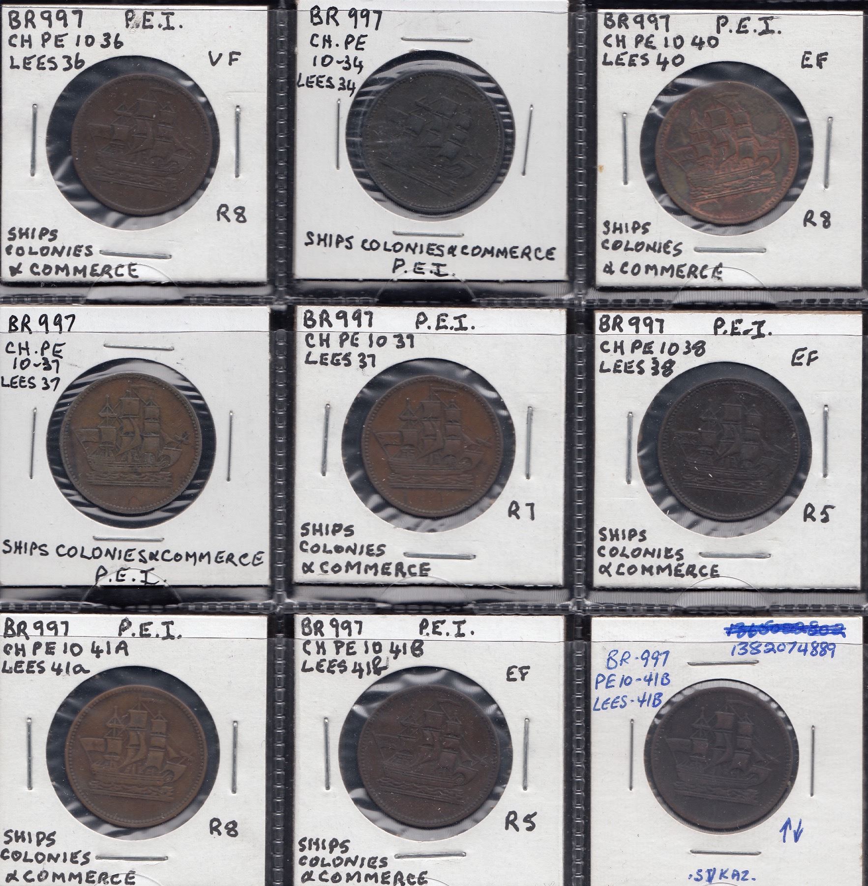 Lees 34, PE-10-34 (1); Lees 36, PE-10-36 (1); Lees 37, PE-10-37 (2); Lees 38, PE-10-38 (1); Lees 40, PE-10-40 (1); Lees 41, PE-10-41A (1); Lees 41, PE-10- 41B (2). Fine to VF+, avg. aVF. 9 Pcs.