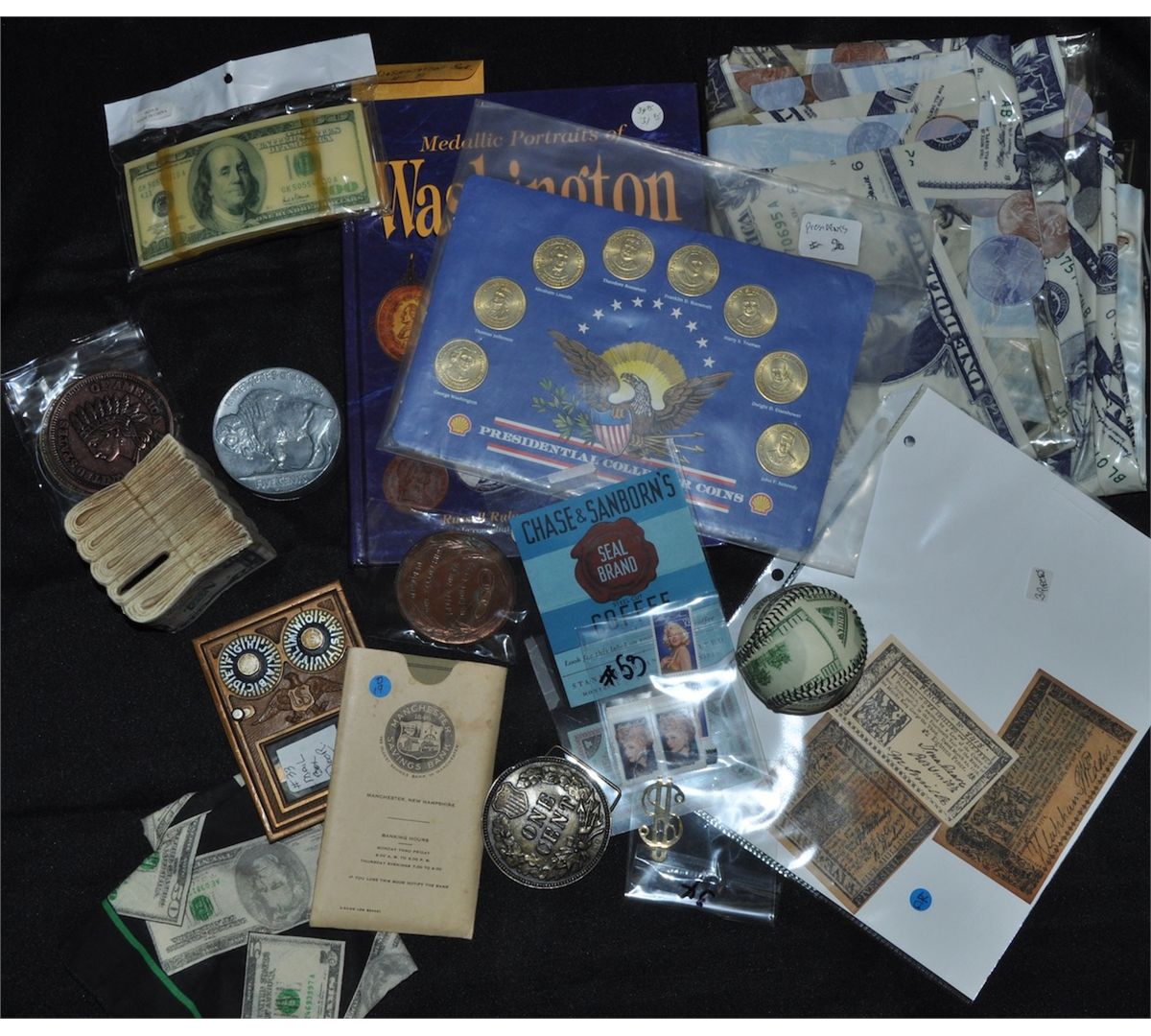 Lot of Americana - Includes: stamps, mailbox door, Manchester Savings Bank passbooks, etc. Should be inspected, No Return.