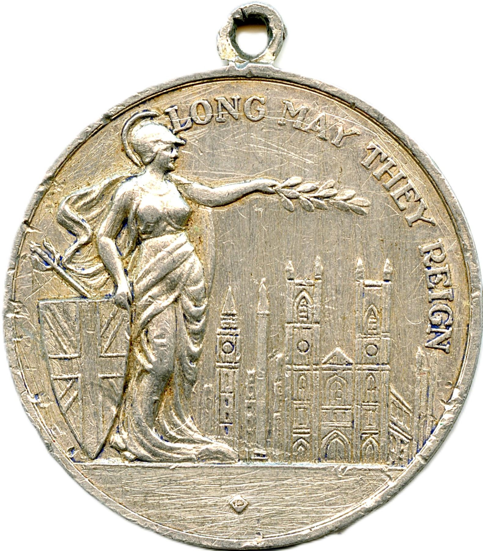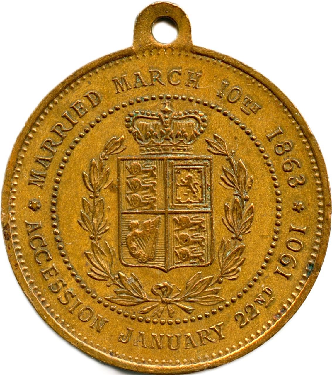 BHM 3506, Eimer 1817a, Bronze, 1897, 70.63g, 57mm, AU; 1897 Victoria, White Metal, Top Holed, 20.74g, 39mm, VG; 1897 Victoria, Gilt Copper, 6.83g, 28x32mm, VF; 1897 Victoria, Gilt Copper, 7.07g, 39x40mm, VF Corrosion; 1901 King Edward VII Accession, Copper, 4.79g, 24x27mm, VF; 1911 Geo V Coronation, Brass, 17.78g, 32x36mm, VF; 1937 Geo VI Coronation, Fear God, Aluminum, 2.78g, 30mm, VF; 1937 Geo VI Coronation, Sons of England, Copper, 10.68g, 30mm, EF; 1937 Geo VI Coronation, Princess Elizabeth, Copper, 8.68g, 26x30mm, EF; 1937 Coronation Geo VI, Long May They Reign, Aluminum, 5.90g, 35x39mm, VF; 1953 Coronation Elizabeth II, Gilt White Metal, 14.64g, 38x42mm, EF. 11pcs.