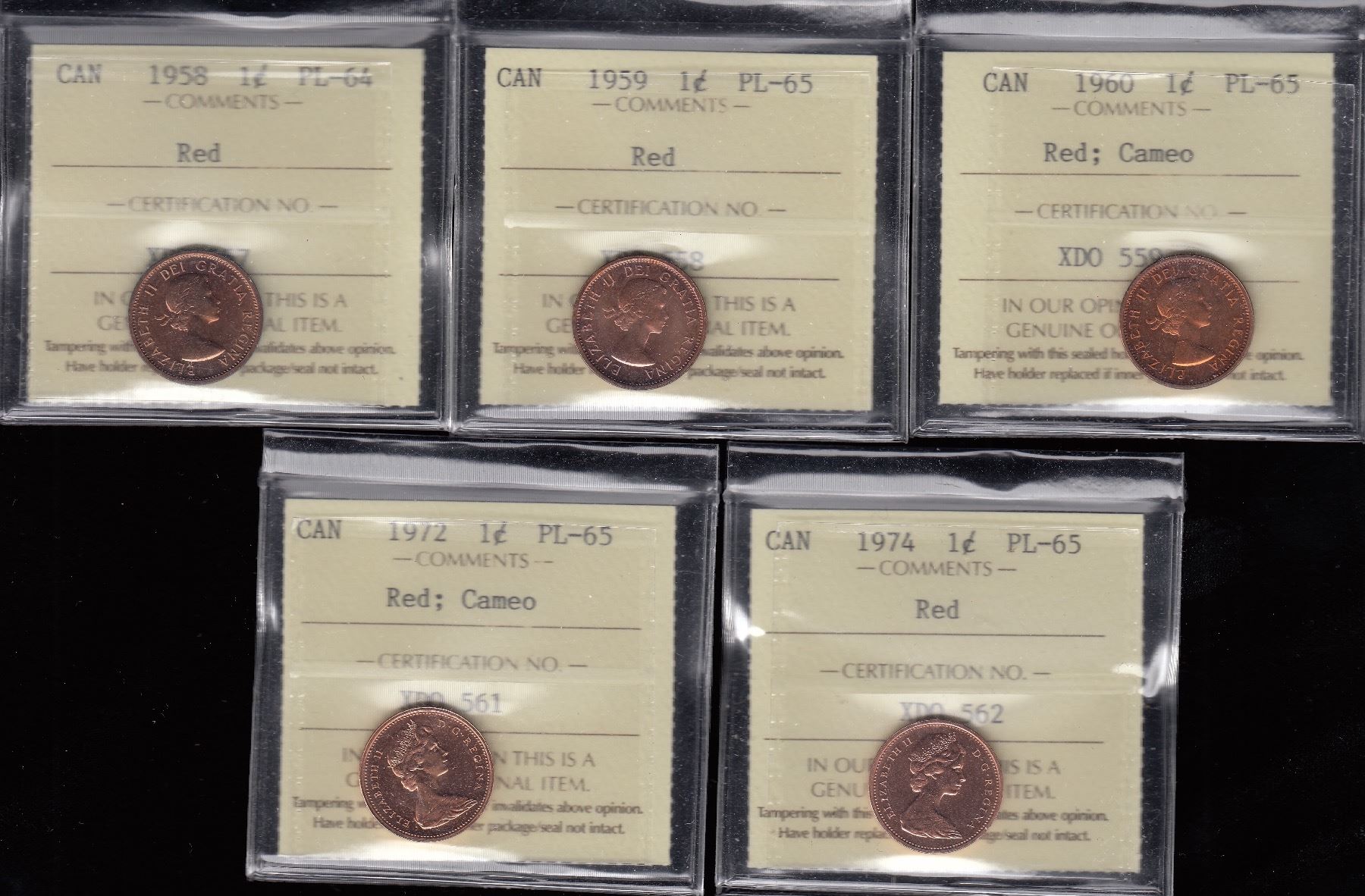 Includes: 1958 PL-64, red. 1959 PL-65, red. 1960 PL-65, red, cameo. 1960 PL-65, red, cameo. 1972 PL-65, red, cameo. 1974 PL-65, red. 5 Pcs.