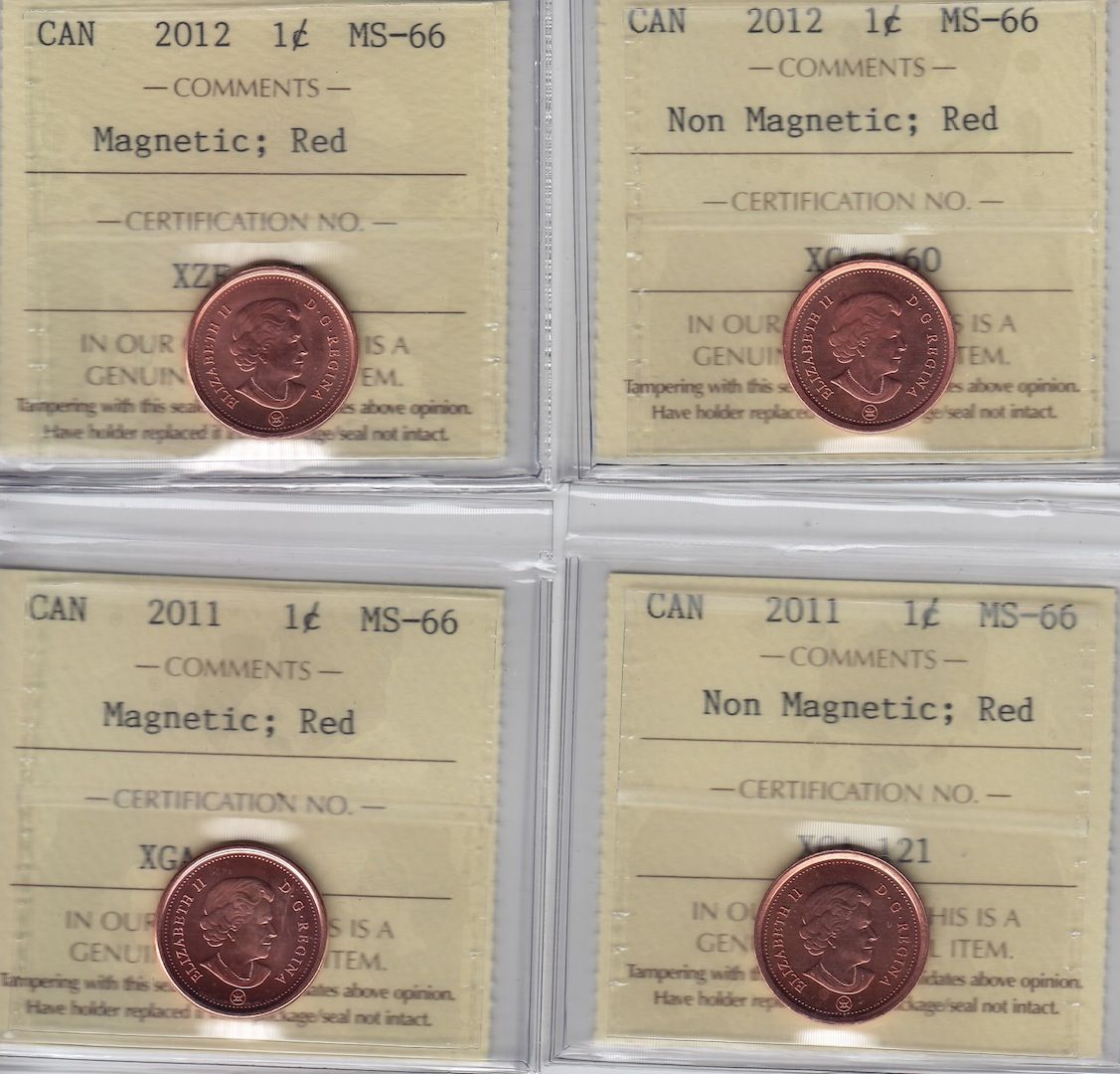 2011 Magnetic and Non-Magnetic. 2012 Magnetic and Non-Magnetic. All are MS-66, Red. 4 PCS.