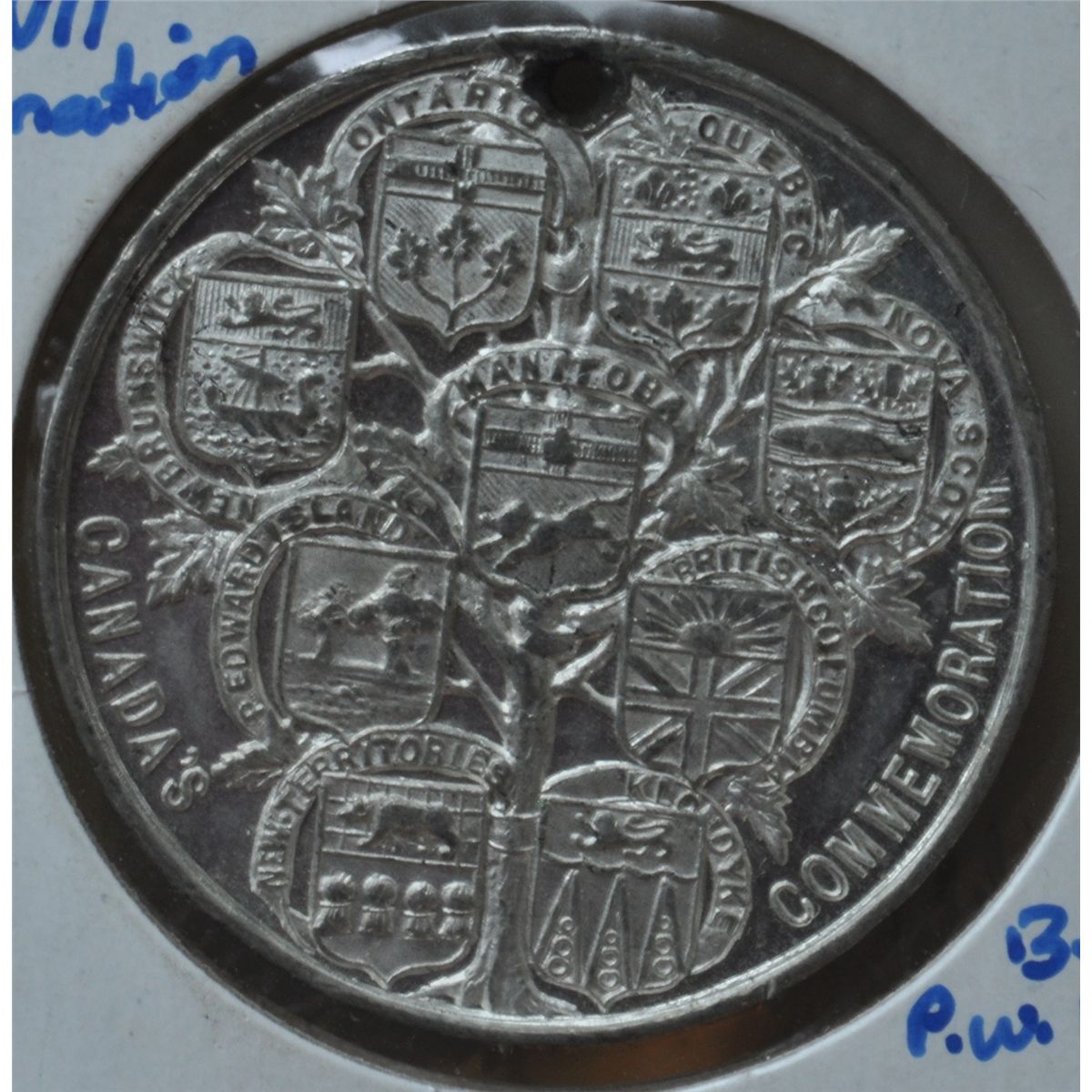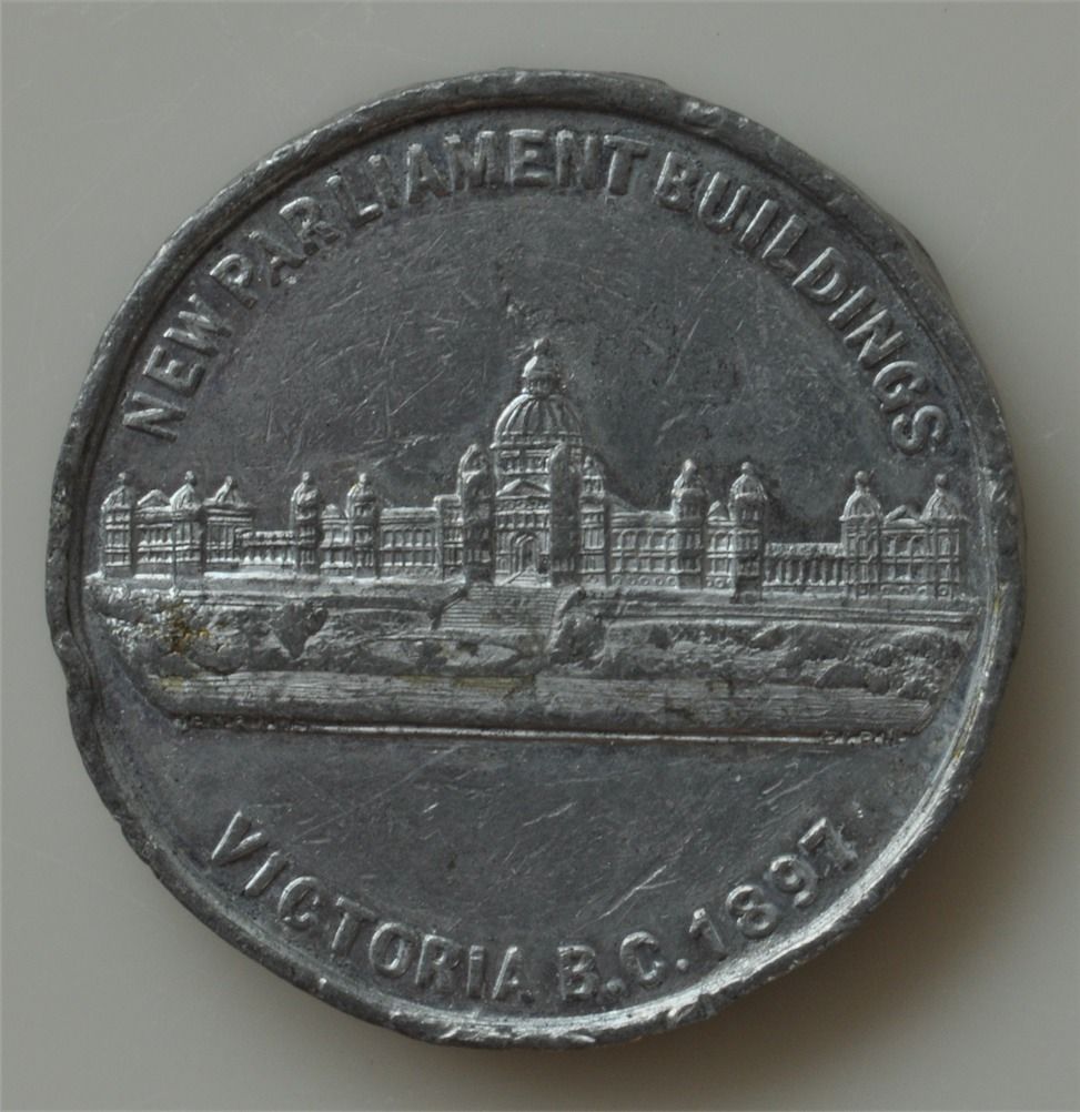 Lot of Four Medals - 1 - Obv. New Parliament Buildings/picture of buildings/Victoria B.C. 1897. Rev. Province of British Columbia/Crest/Hon. E. Dewdney/Lieut. Governor. WM, 36mm, EF with edge damage. 2 - Obv. Canada's Commemoration (provincial crests). Rev. Edward VII King and Emperor Alexandria Queen cojoined busts. WM, top holed for suspensions 33mm, EF. 3 - Obv. Canada/July 1, 1867/Crest. Rev. He Shall/Have Dominion/Also from sea to/sea and from the/river unto the/ends of the/earth/ Psa 72:8. AL, 38mm, EF. 4 - Obv. To commemorate 1939 Visit of their majesties to Canada, cojoined busts. Rev. Ship H.M.S. Repulse. Brass, looped with ribbon & bar, 25mm. Birks. 4 Pcs.