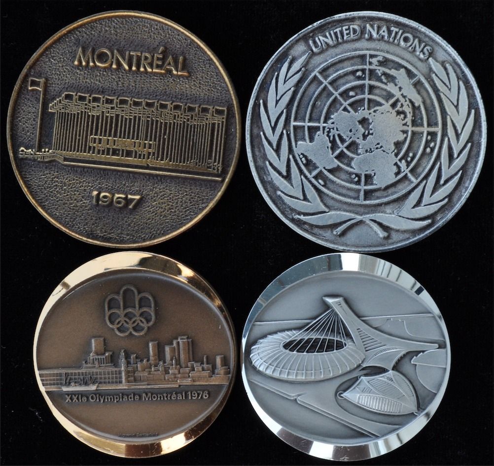 Lot of Four Montreal Olympic & Centennial Medals - 1967 Montreal United Nations - wm and bronze. 1976 Olympic wm and bronze. 4 Pcs.