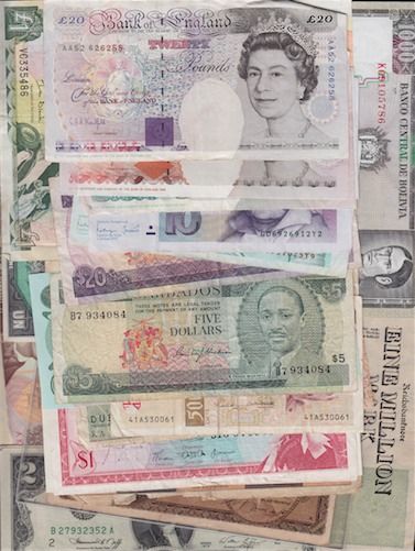 Lot of Miscellaneous World Banknotes - Includes: 35 British Pounds, 60 Deutschemarks, 25 Barbados Dollars. Conditions vary, viewing is recommended. 29 Pcs.